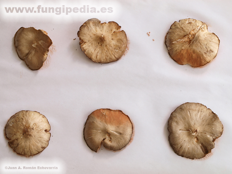 Fotografía de esporada en masa de Entoloma clypeatum.