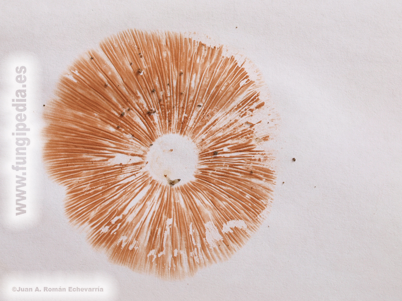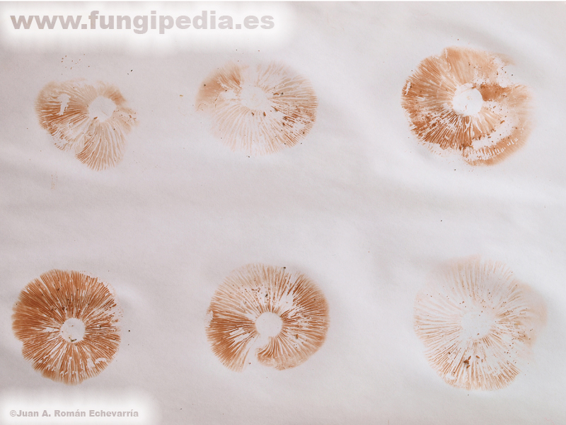 - Fotografía de esporada en masa de Entoloma clypeatum.