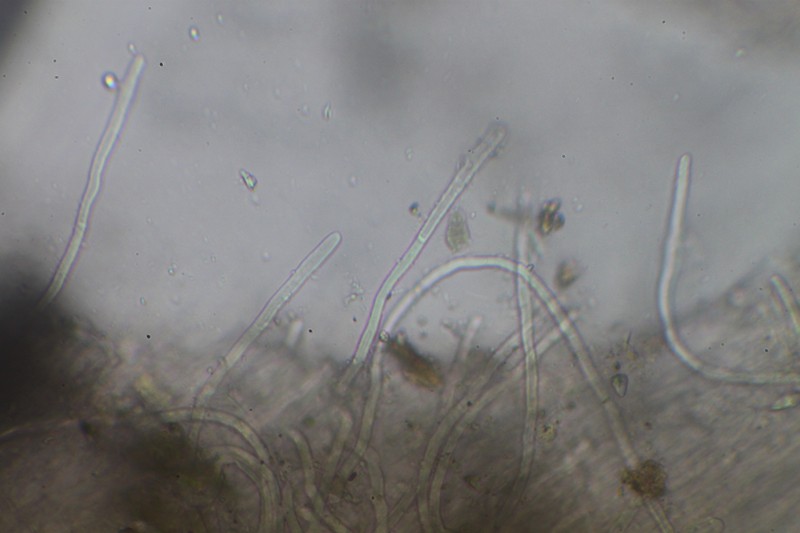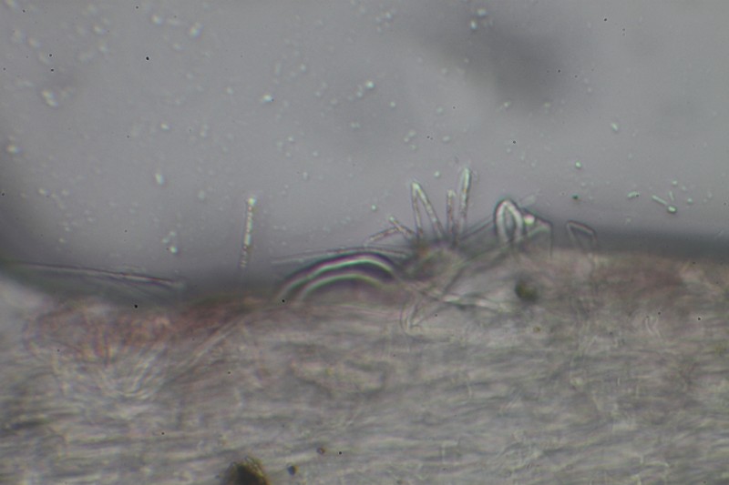 He dejado madurar los ejemplares en cámara húmeda. Las esporas forman tubos germinativos.