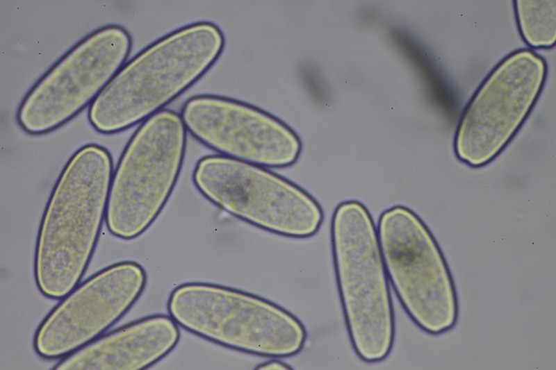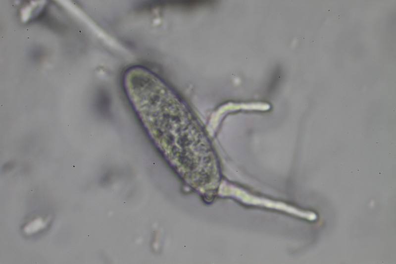 Las esporas son de forma elipsoidal. La mayor parte de ellas no presentan indentaciones o muescas en sus polos.