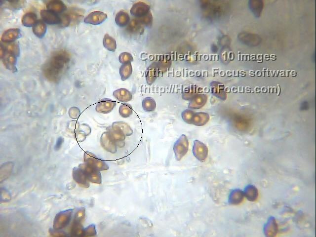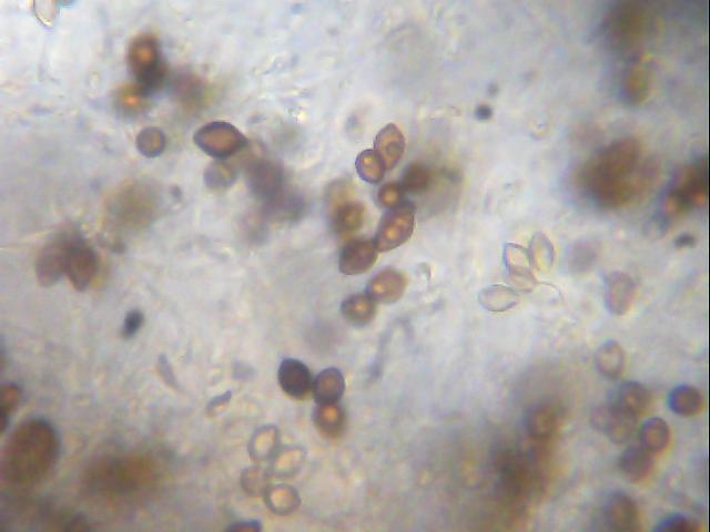 esta es la cámara del micro y las fotos no salen muy buenas ,lo mas que e podido observar los basidios con cuatro esporas en esta foto poco se ve pero bueno