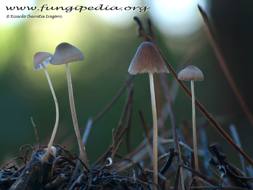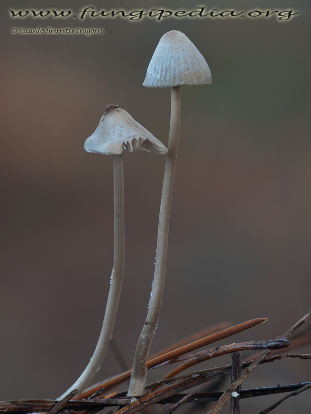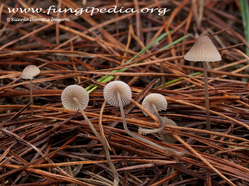 Esta Mycena de la Sección Filipedes crecía sobre el lecho de acículas de Pinus radiata compartiendo hábitat con Mycena galopus.