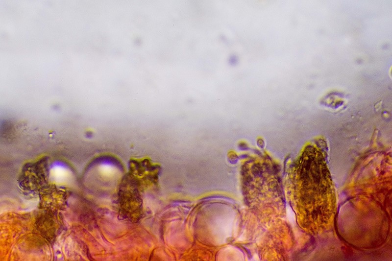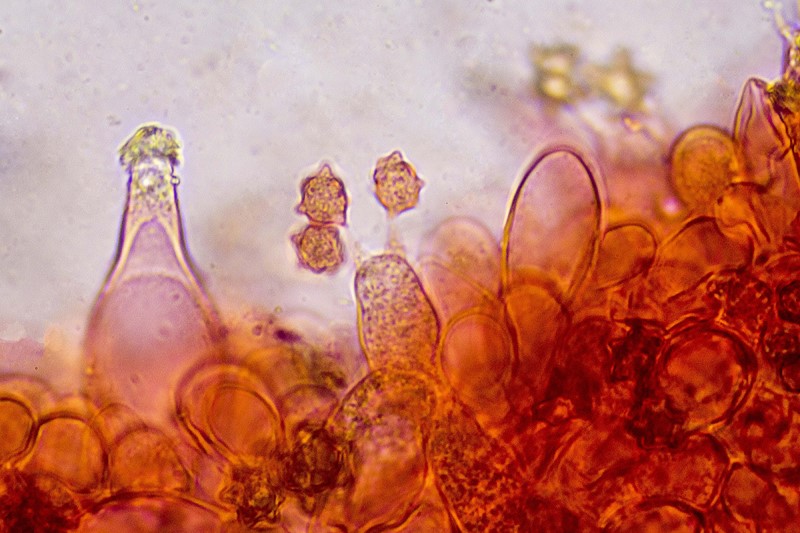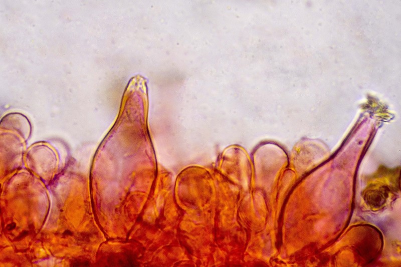 La forma de las esporas es ciertamente vistosa. Pero casi me gustan más sus cistidios.