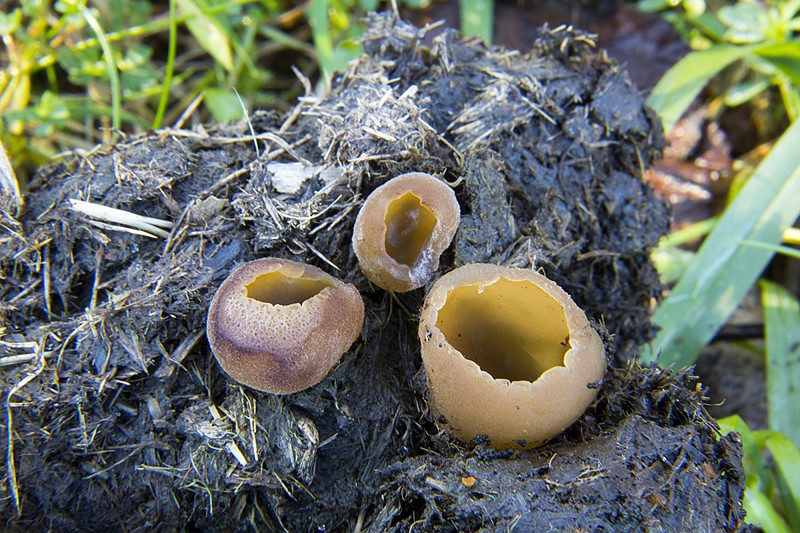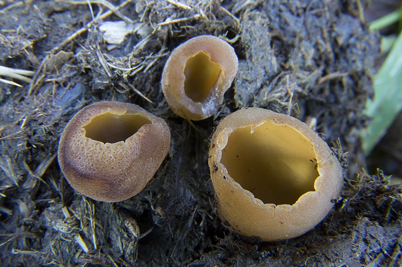 Peziza fimeti es una de los escasos representantes fimícolas del género.