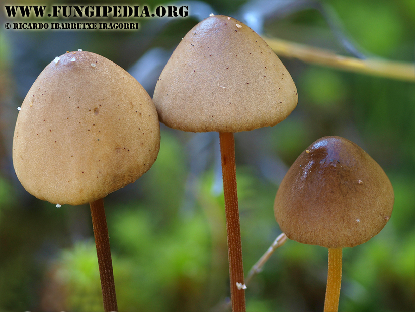 Píleo: de 10 a 30 mm, Cónico, luego hemisférico o convexo, de color marrón, marrón-castaño, adopta también tonos pálidos cuando se seca. Margen indistintamente estriado dependiendo de la humedad.