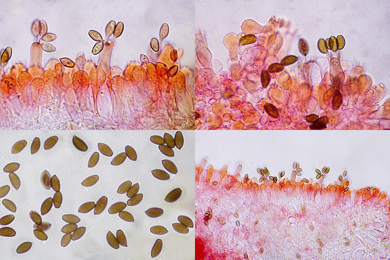 Basidios tetraspóricos. Esporas de 8,5x5 micras, ovoides, truncadas, con poro germinativo central. Carece que queilocistidios y de pleurocistidios. Pileocistidios de hasta 200 micras de longitud, con el ápice redondeado. Presencia de esferoscitos en la pileipellis. Caulocistidios de forma semejante a los pileocistidios.