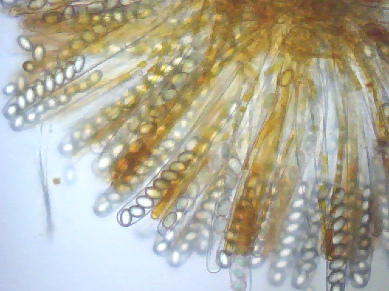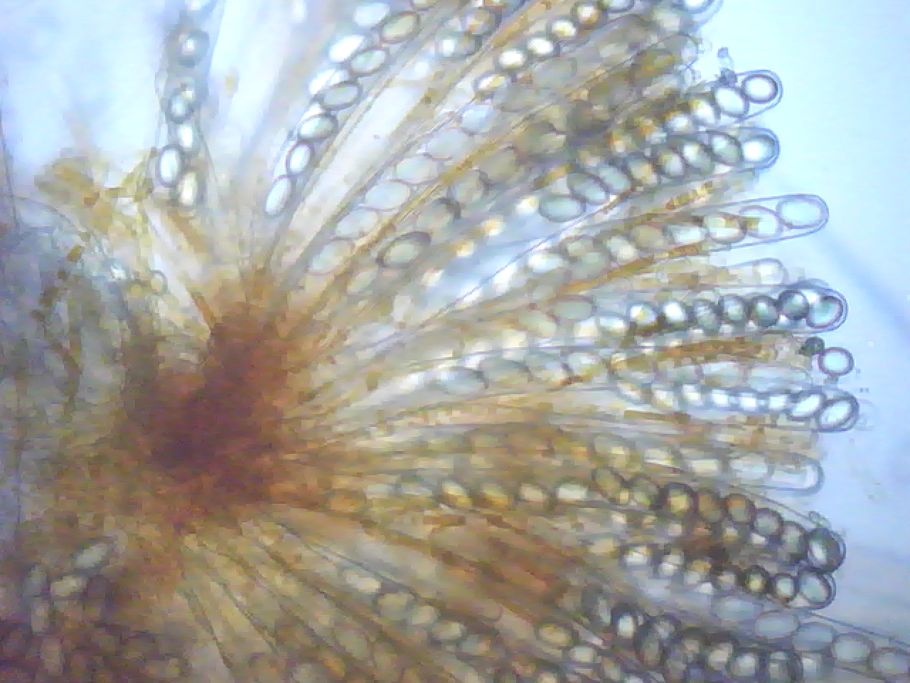 Ascas cargadas de esporas con forma de cola de Pavo real