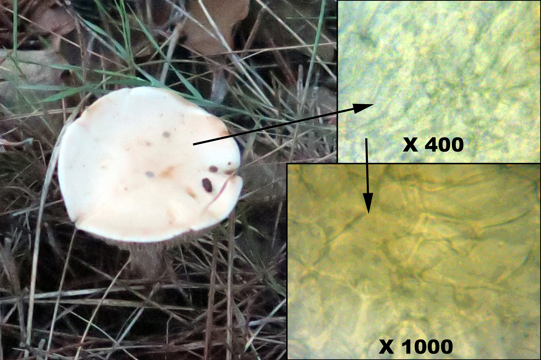 Detalle de la trama de la lámina y en la imagen de abajo, como no tengo claro si se trata de basidios o cistidios voy a hacer caso a Ricardo y lo voy a dejar en “células terminales”.
