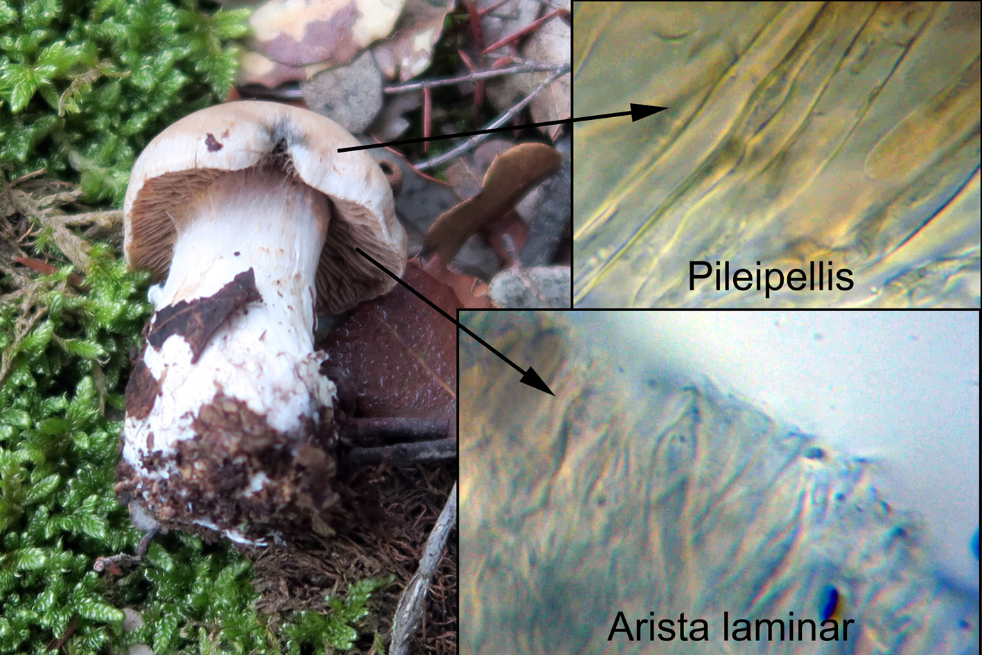Se trata de un Cortinarius con unas esporas de un tamaño bastante pequeño en comparación con la mayoría de las especies del género. De todas mis propuestas solo encaja con Cortinarius privignoides y de manera ya un poco forzada con Cortinarius urbicus. En el caso de Cortinarius privignoides, a parte de las medidas también encaja el aspecto poco verrucoso de estas, así como la ausencia de queilocistidios. En el caso de tratarse efectivamente de Cortinarius privignoides, el aspecto macroscópico no termina de encajarme, es decir no lo veo suficientemente claro. Como aún dispongo de las muestras no descarto volver a pasarlas por el micro, así como volver a comprobar el comportamiento frente a los reactivos.