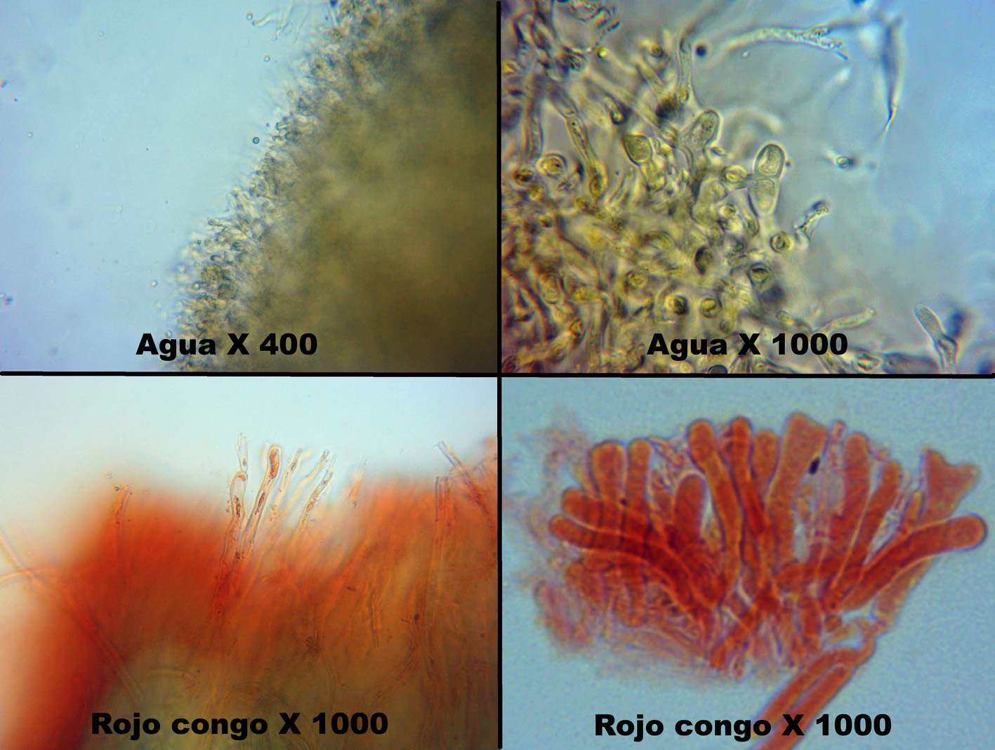 Las esporas subhialinas, en KOH y reactivo de Melzer practicamente desaparecieron, por este motivo preferí utilizar el Rojo congo para poder apreciar mejor su interior.