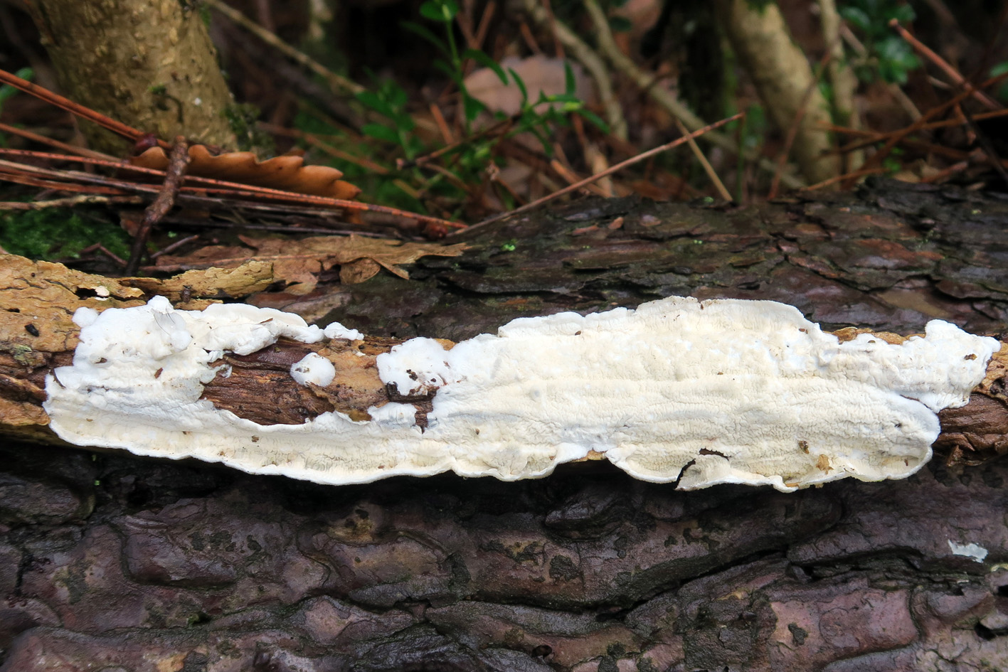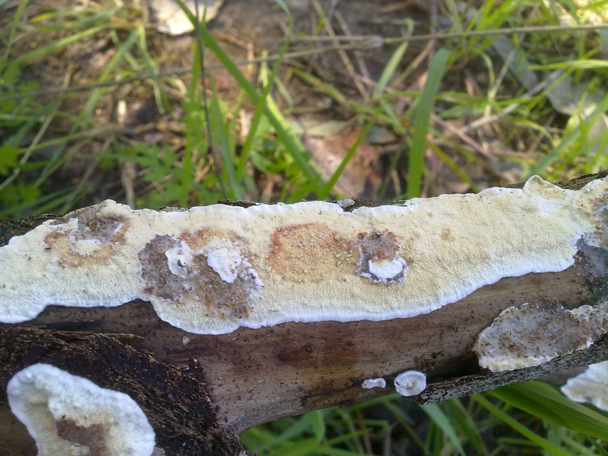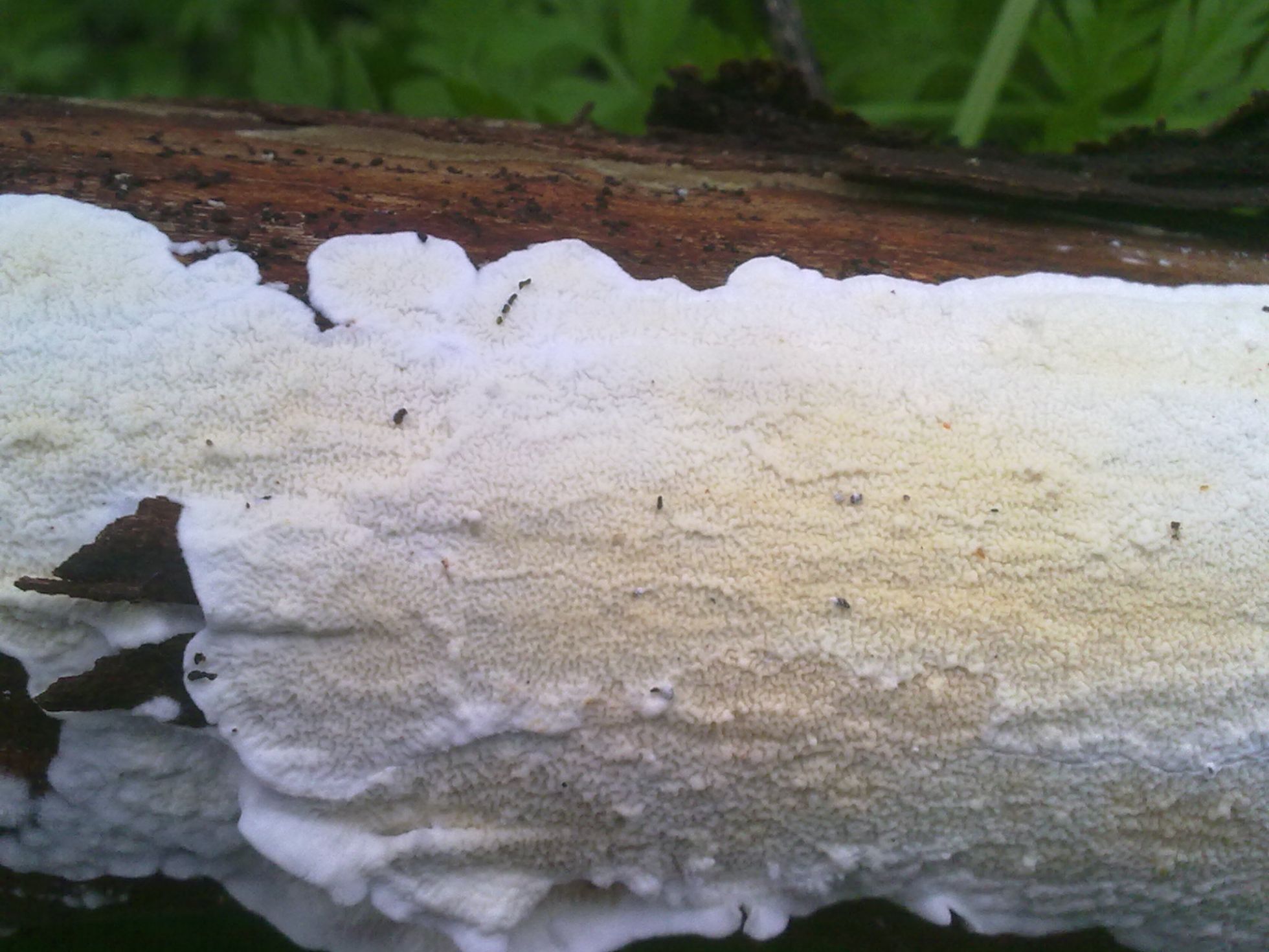 La duda que ayer me contemplaba era que la Byssomerulius corium no suelen salir sobre maderas blandas = coníferas, si no sobre maderas duras = caducifolios. Puede que en mi primera intervención no interpretara bien tu imagen que a diferencia de estas nuevas incluyes fotos macro, algo fundamental para muchos de estos carpóforos que salen de forma resupinada. La Byssomerulius corium es una especie que he visto en muchas ocasiones, y si te fijas en tus dos primeras imágenes los bordes están levantados en forma de faldilla.