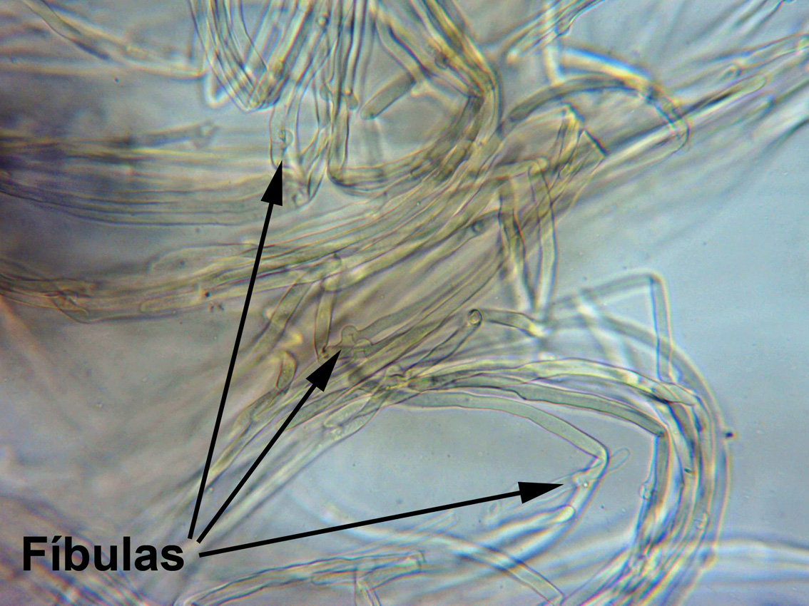 Detalle de las hifas de la cutícula, con KOH, estas se presentan fibuladas.