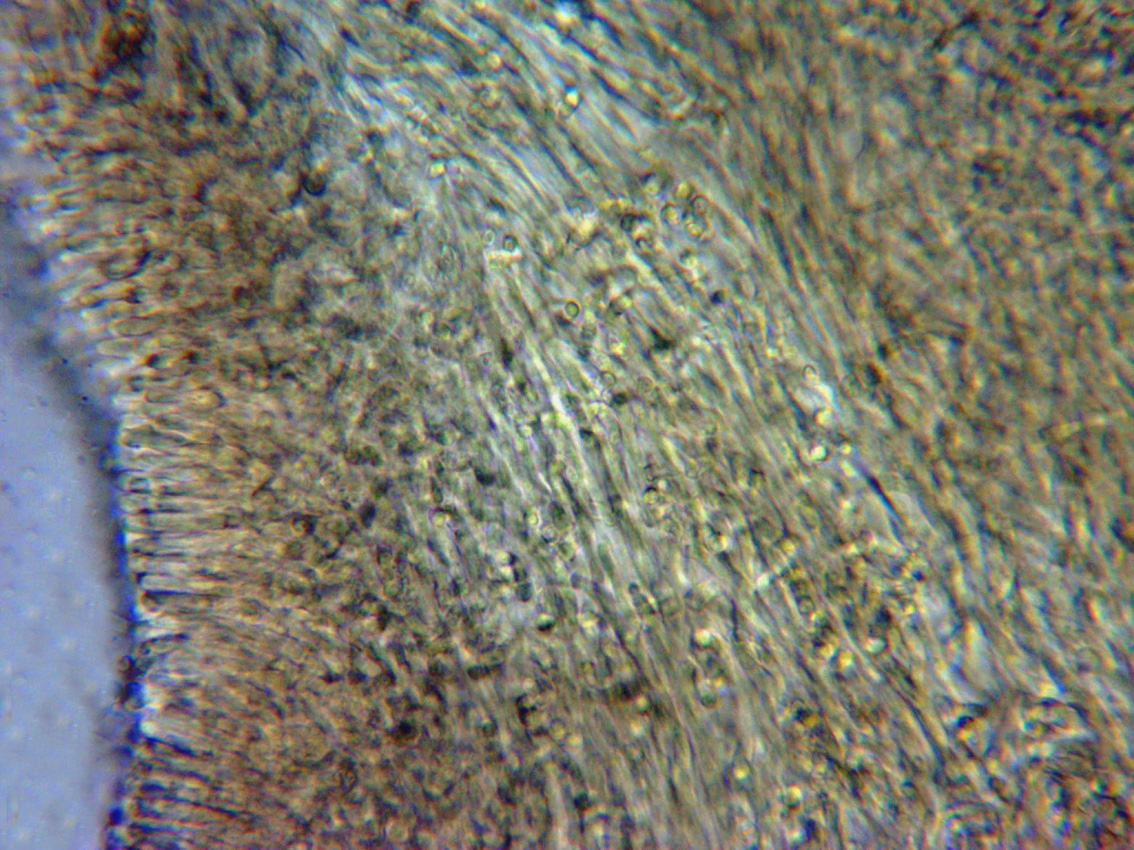 Detalle de la trama laminar, también en KOH y a 400 aumentos.