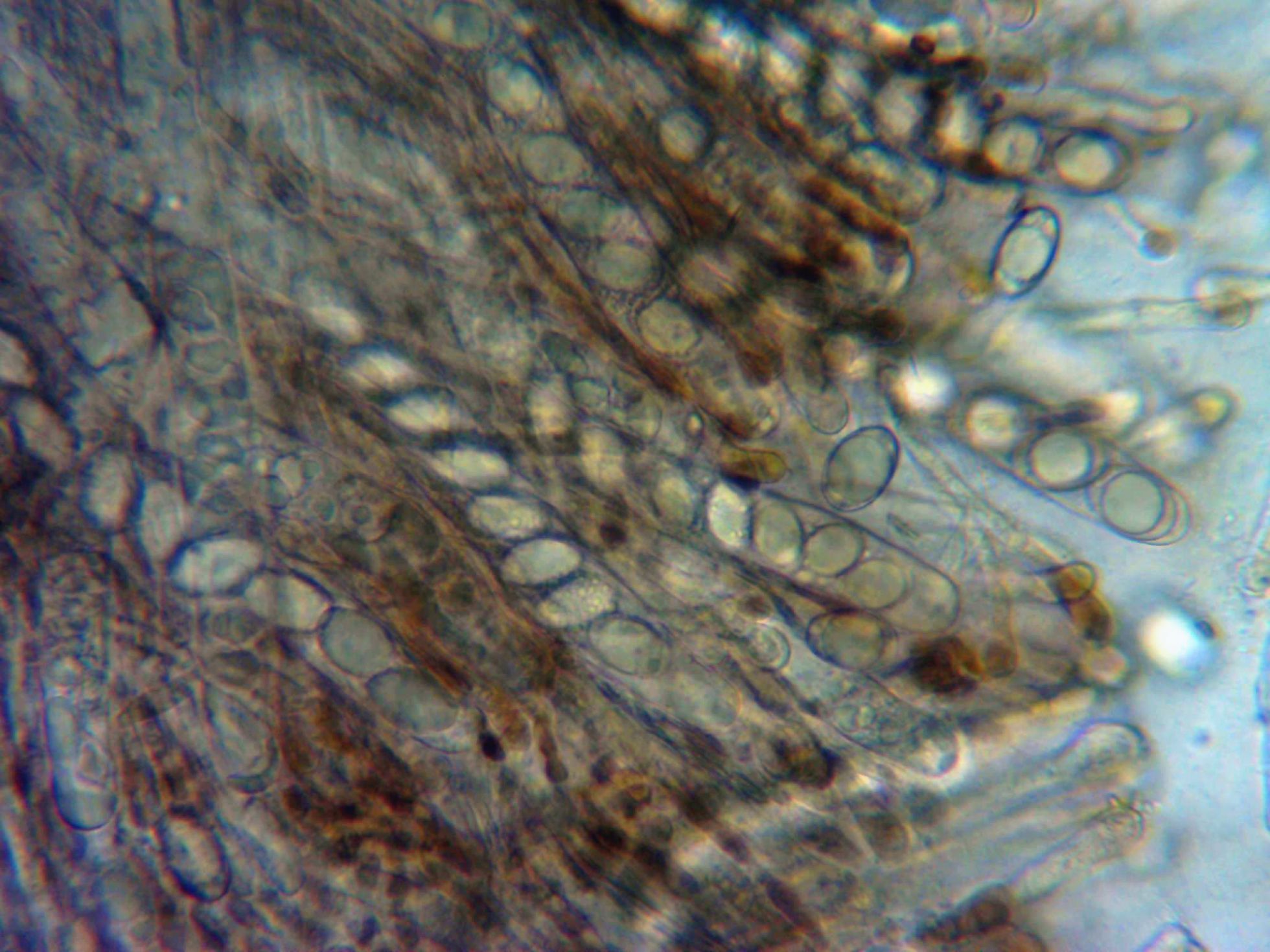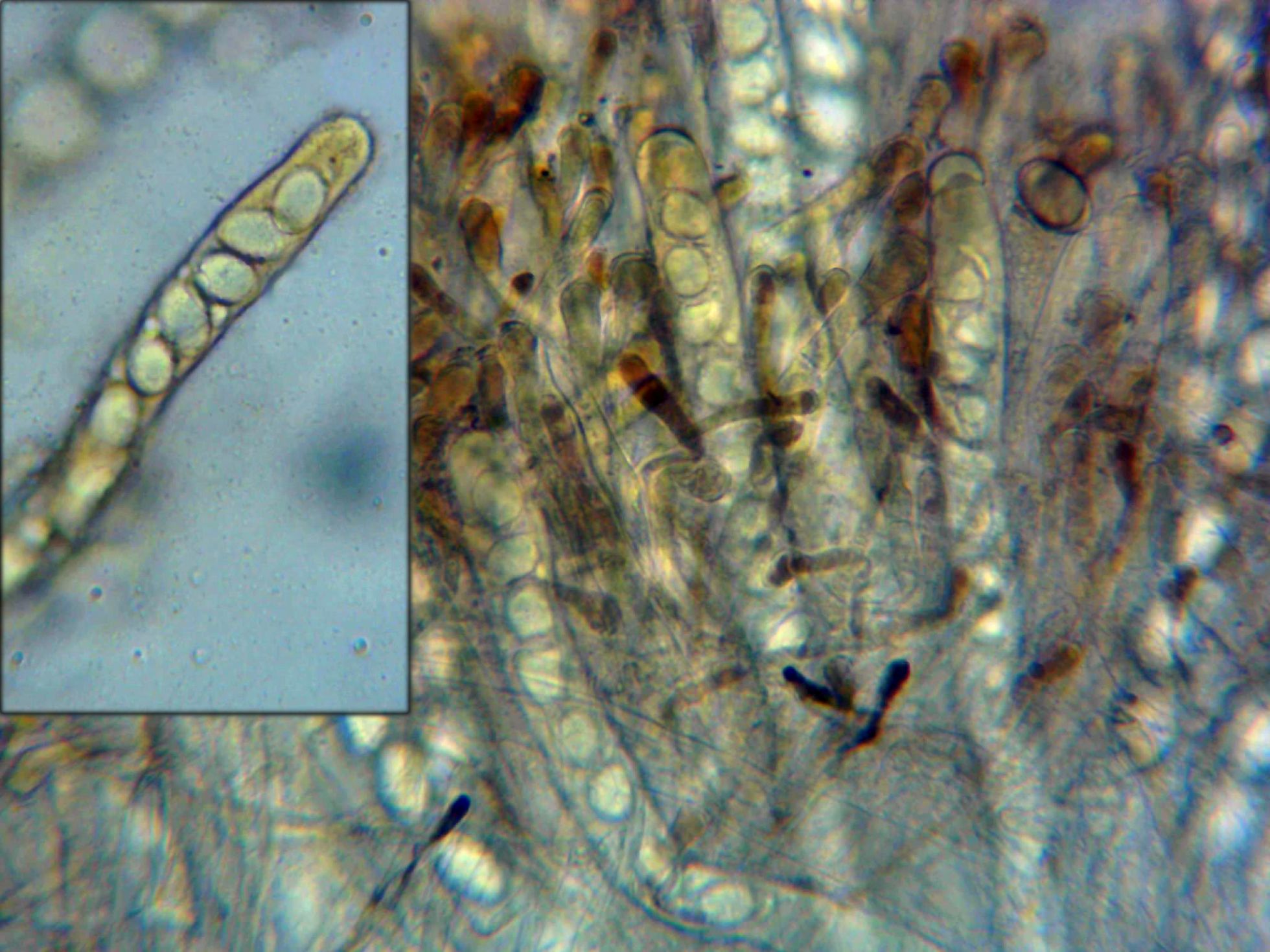 Ascas y parafisos a 400 aumentos, en la miniatura detalle de un asca.