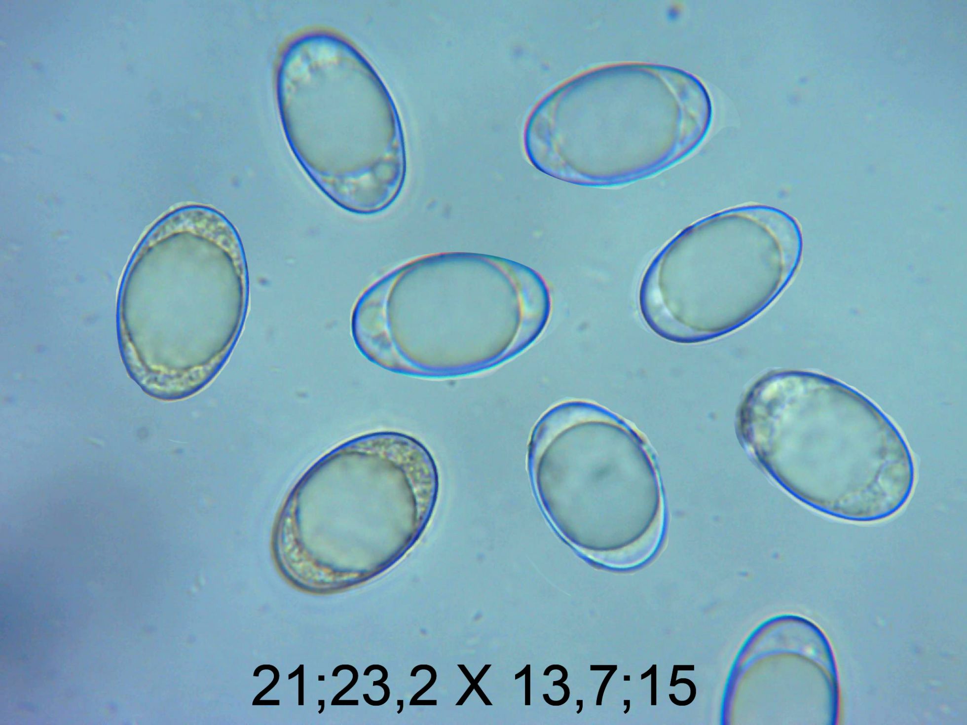 Sus enormes esporas a 1000 aumentos y las medidas.