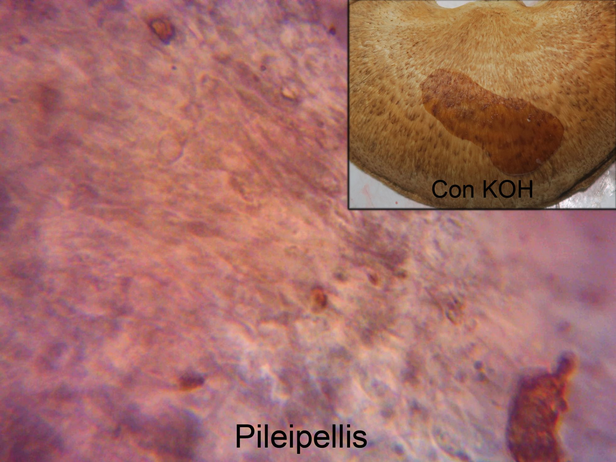 En la miniatura el comportamiento frente al KOH en sombrero, negativo en carne, en la imagen principal el cutis aglutinado a 1000 aumentos.