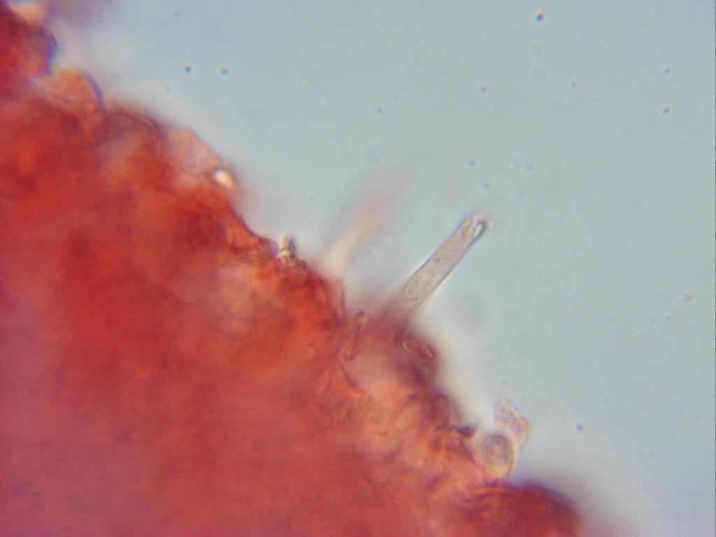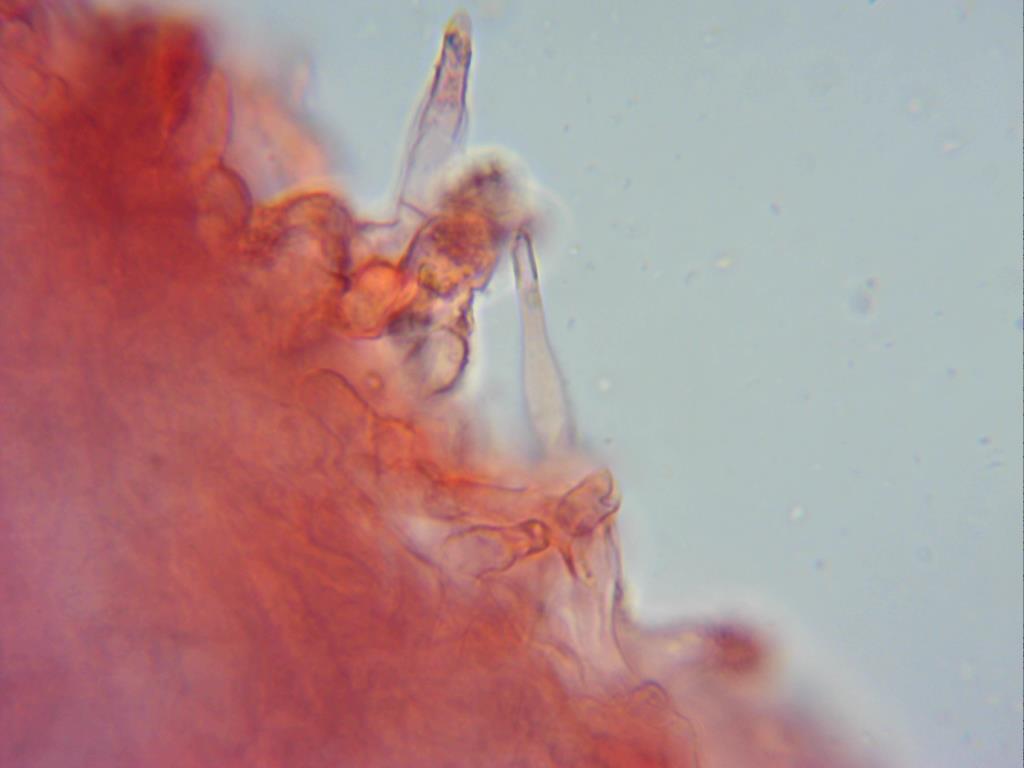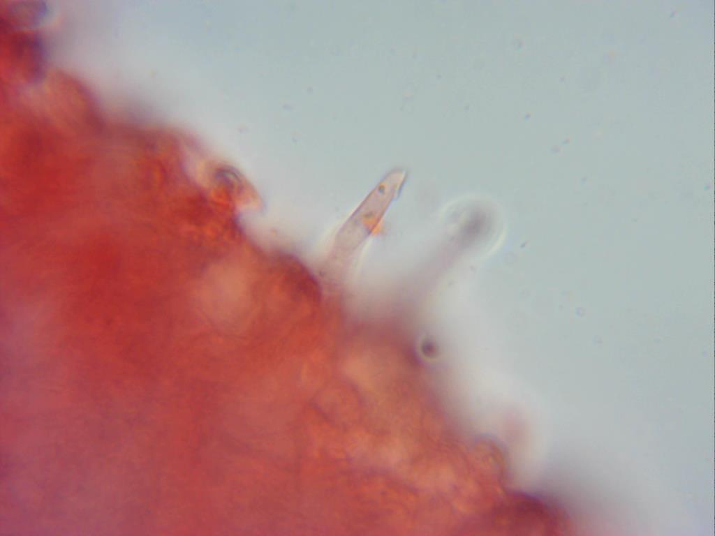 He vuelto a pasar por el micro la Melanoleuca excissa haciendo hincapié en la arista laminar y si creo haber encontrado los dichosos queilocistidios, por cierto bastante abundantes. Dejo unas imágenes de los supuestos queilocistidios.