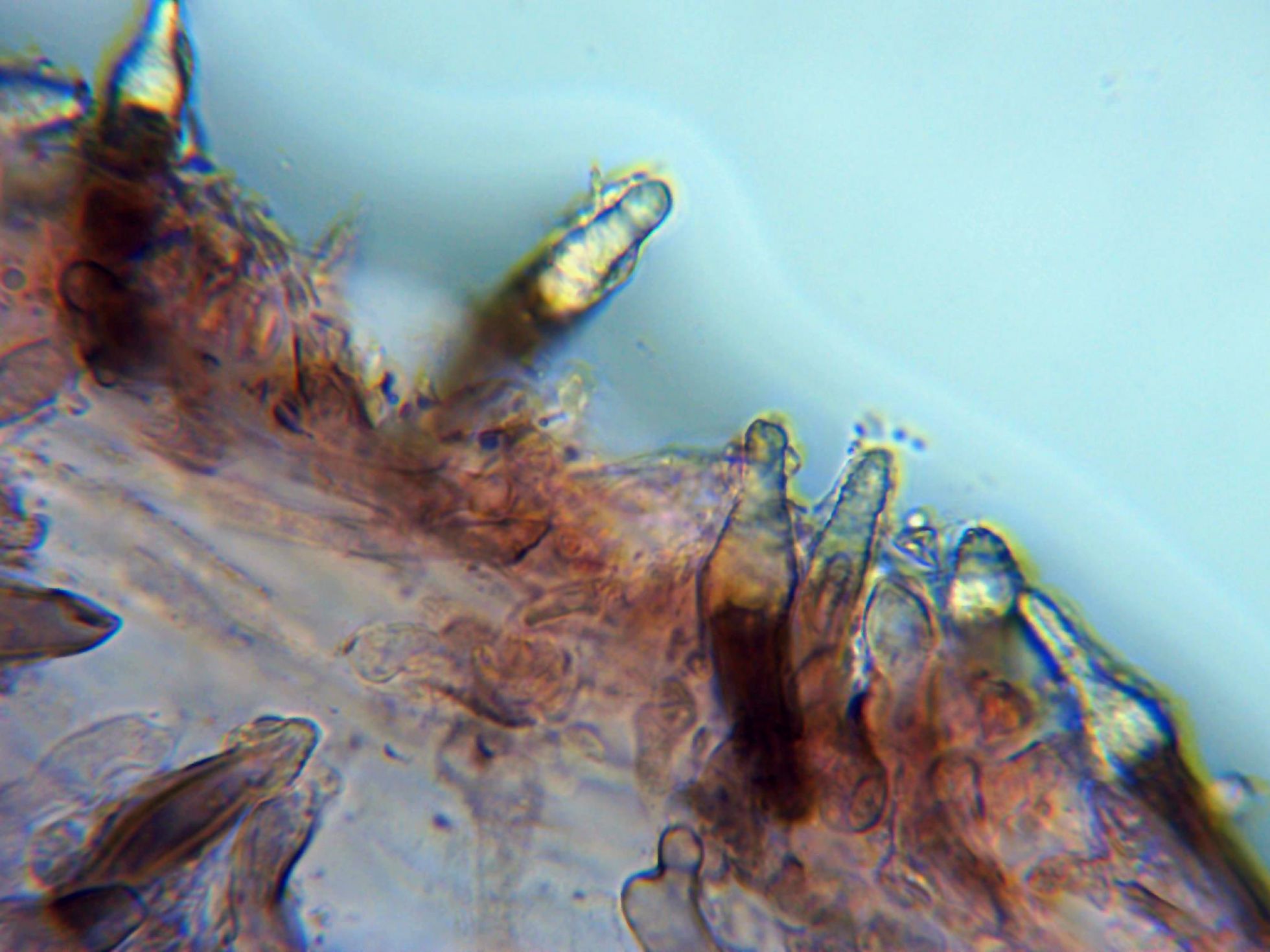 Queilocistidios a 1000 aumentos, de entre 31 y 35 micras.