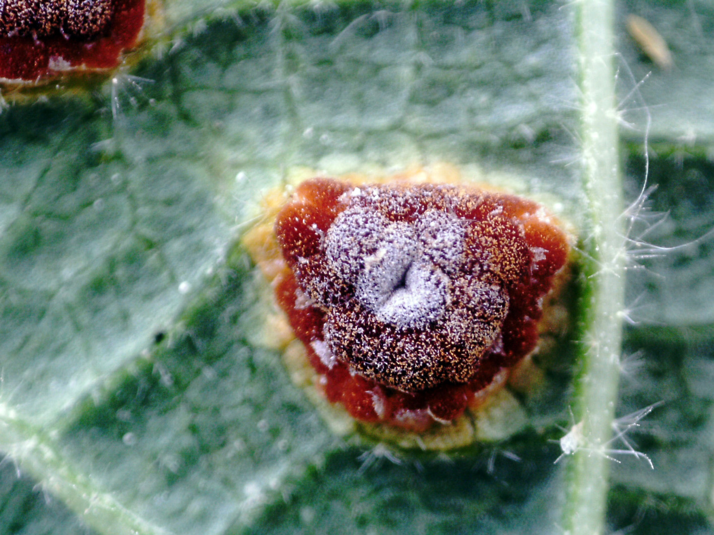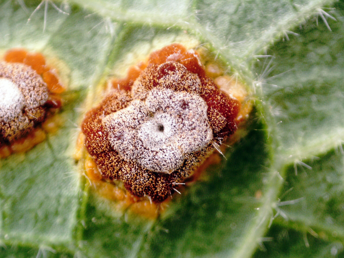 En estos momentos hay 4099 especies de Puccinias registrados, son los causantes de importantes pérdidas en los cultivos, el que nos ocupa , la Pucinia malvacearum, parasita a plantas de la familia Malvaceae, con cuerpos circulares y globosos de un color amarillento y aspecto piloso de entre 1,5 y 2 mm. de diámetro. Dejo imagen de la especie.