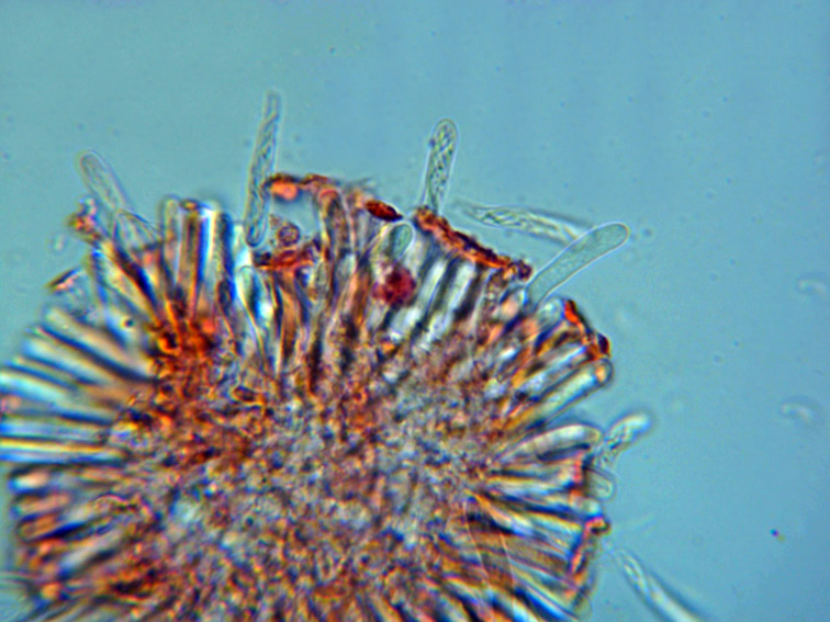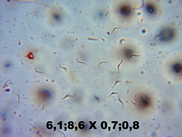 Difícil conseguir imágenes decentes de las esporas, por su forma y reducidas dimensiones, estas con forma de hélice y terminadas en punta, os dejo también el resultado de mis mediciones.
