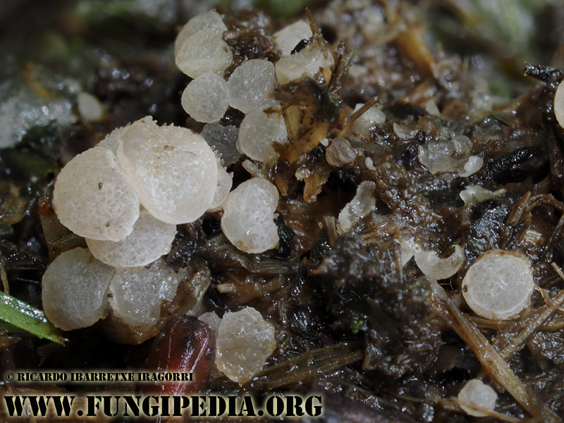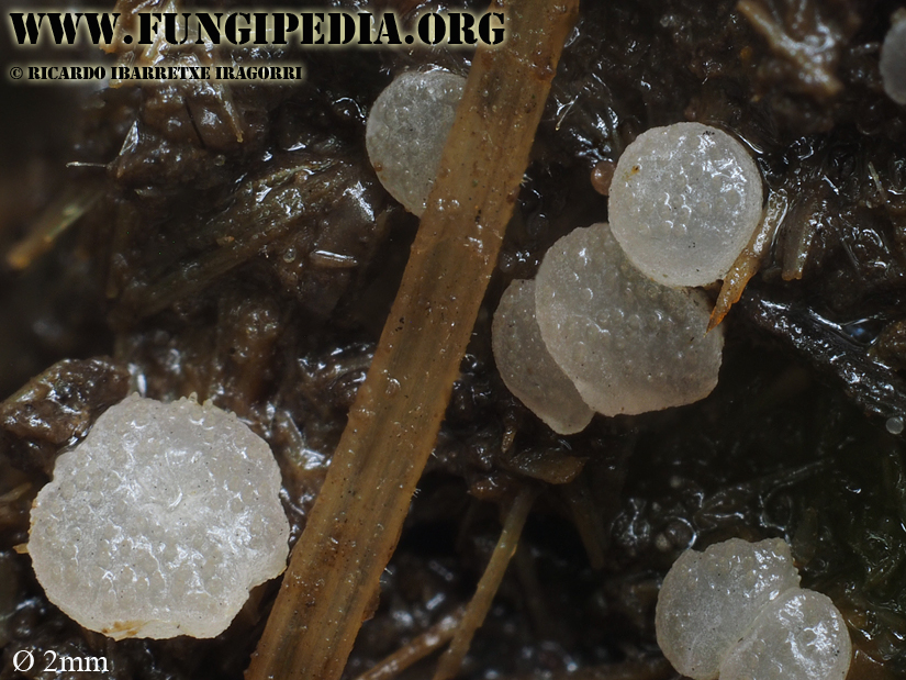 Ascomas sésiles de hasta 2mm de diámetro, de color blanco o blanco grisáceo, discoideos, a veces cilíndricos o con forma de cono truncado. De superficie himenial rugosa debido a la emersión de los ápices ascales, margen poco diferenciado.