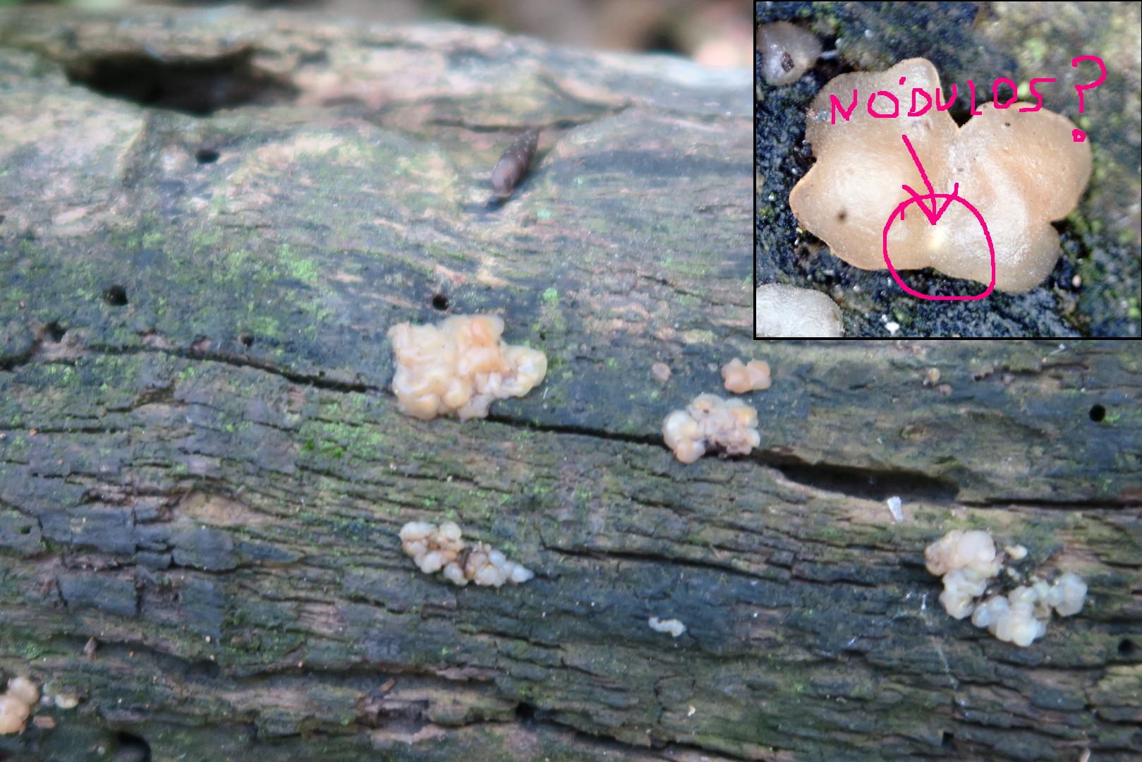 Hola chicos, muchas gracias a los tres, para Javier y Koldobika, ya digo en el post que no encontré imágenes de la microscopía de Exidia cartilaginea, de la Exidia nucleata si que hay información y de hecho encaja bastante bién con mi propuesta, pero no atino a ver en mis ejemplares los nódulos de oxalato de calcio que deberían ser muy visibles a la vista tal y como se observan en las imágenes de nuestro amigo Javier, en mi caso me parecen transparencias, no pude observarlos ni a simple vista ni en la microscopía,os dejo dos nuevas imágenes ampliadas de la especie a ver que os parecen. Si pudiera confirmar la presencia de estos nódulos si se confirmaría la opción de Exidia nucleata.