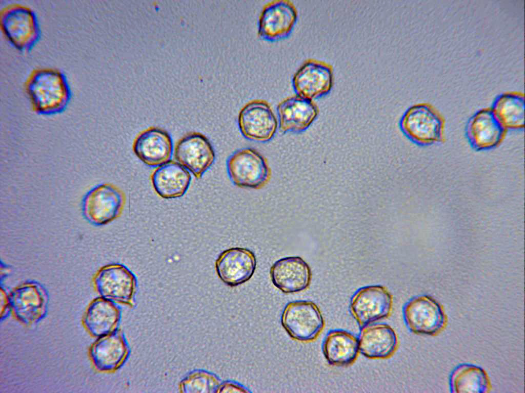 Muchas gracias por vuestra opinión, dejo una nueva imagen de las esporas donde se observa mejor los ángulos redondeados de la especie, es que en estos momentos no me encaja con ninguna otra propuesta, cualquier sugerencia será muy bienvenida ya que ya digo que en mi caso no me encajaba el hábitat.