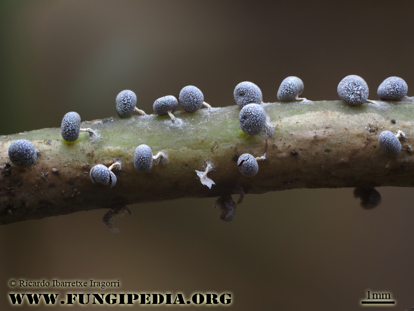 Os presento un Myxomycete muy bonito, de apenas 1mm de longitud, recolectado sobre corteza de Alnus glutinosa y tallos vegetatales (Hedera helix).