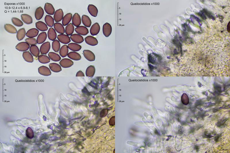 Esporas 10,9-12,4 x 6,9-8,1; Q = 1,44-1,68; con pared ancha, más o menos hexagonales en vista frontal , poro germinativo distintivo.