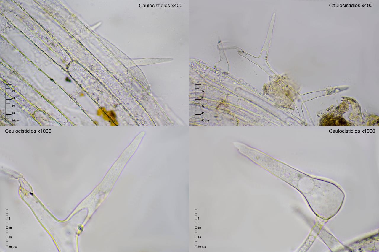 Caulocistidios lageniformes, similares a los pileocistidios.