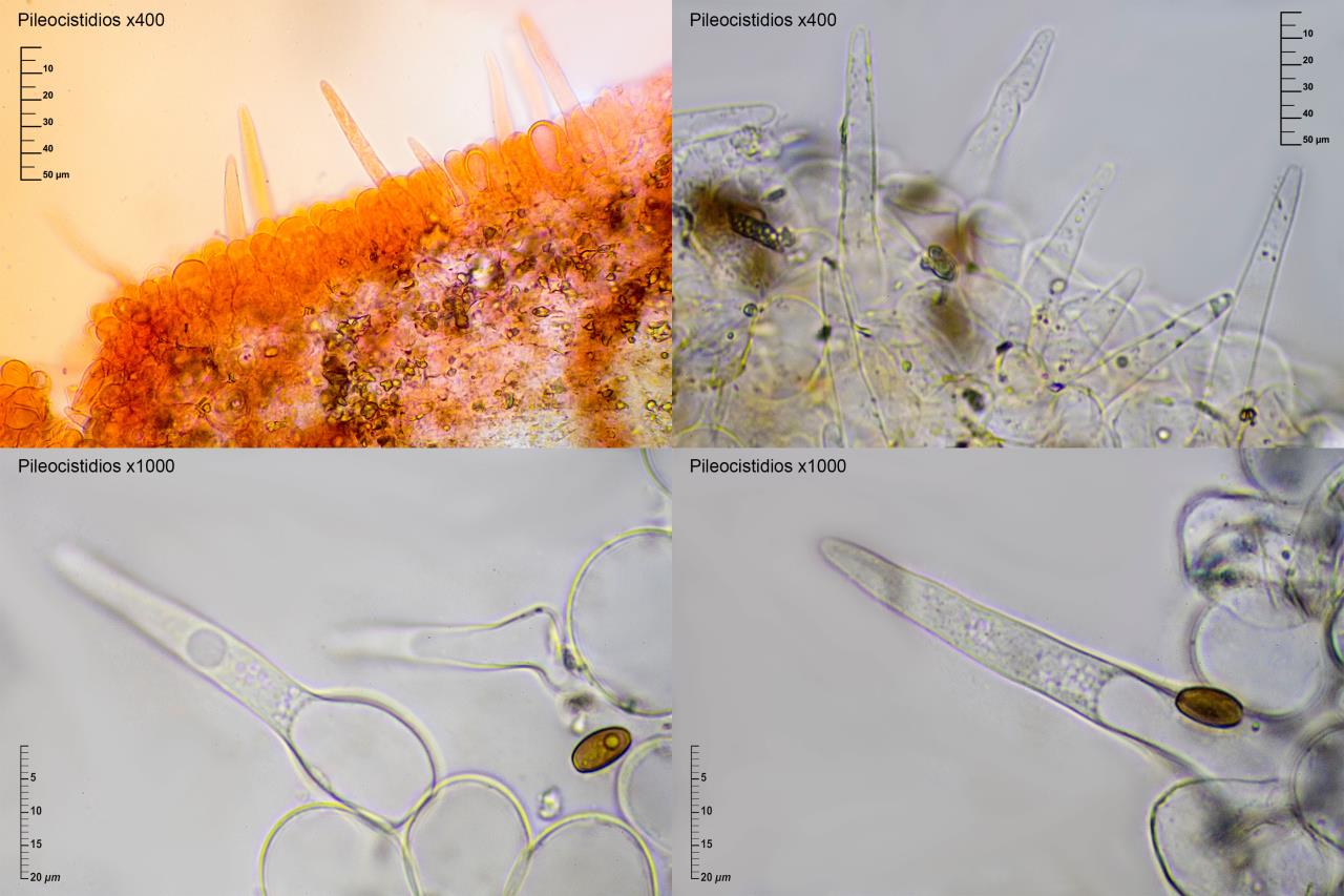 Pileocistidios lageniformes, con el ápice relativamente agudo.