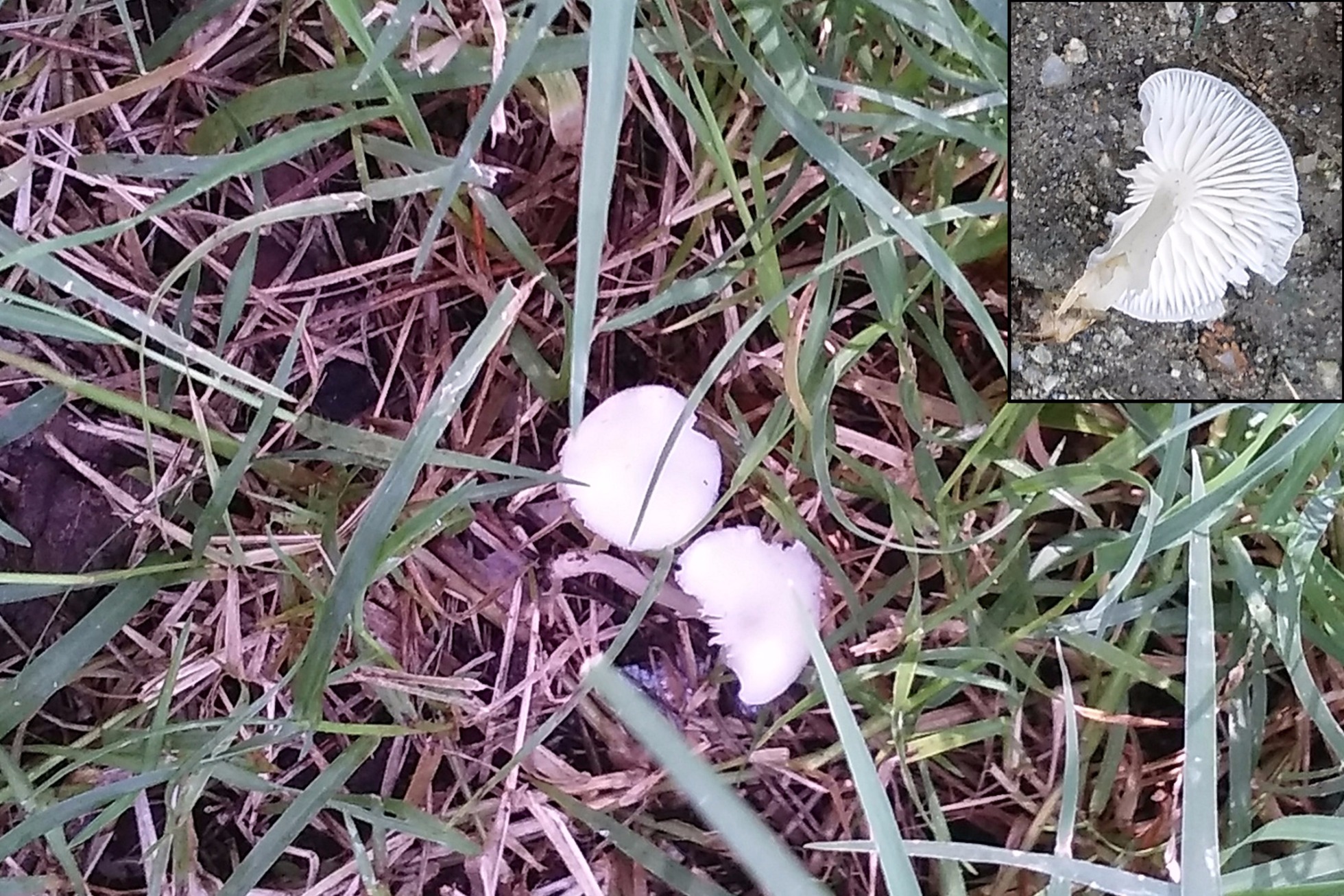 Delicada Mycena de pequeño tamaño, de color blanco tanto el sombrero como el pié, con láminas entre sinuadas y decurrentes, medianamente espaciadas y con abundantes lamélulas y sublamélulas.