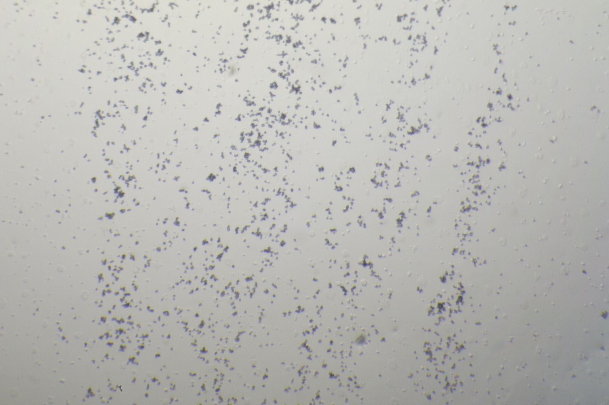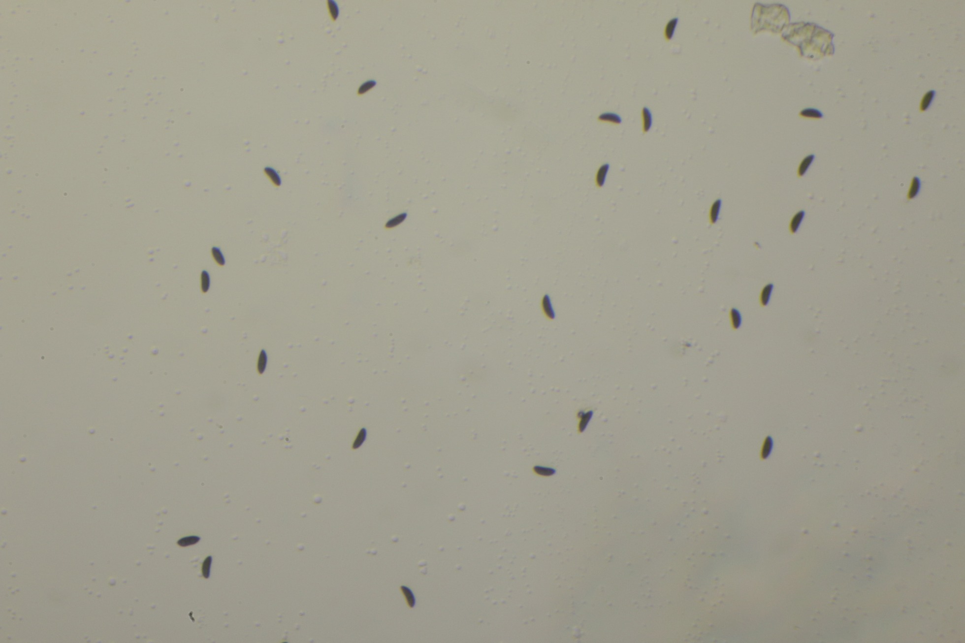 "*scopio". Cuando empecé a tomar de esporas, inicialmente intenté el método de raspar esporada, dejar caer en portaobjeto, y dejar caer una gota de agua para intentar mezclarlas homogéneamente, y luego poner el cubre.