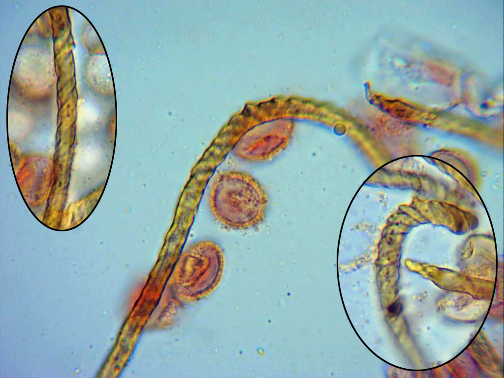 Capilicio con muchos extremos libres, en mi caso sin ramificaciones, esta descripción encaja con la que hacen de este muchos autores, aunque algunos lo definen "sin ramificaciones o con muy escasas ramificaciones", en mi caso por mucho que me esforcé no pude observar ninguna.