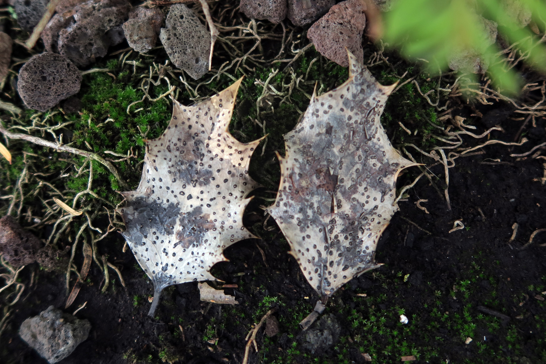 como bien dice Juan a veces damos por sentadas cosas que luego no son tal. Por fortuna en mi tierra el acebo es una especie muy común y a pesar de conocer de la existencia de dicha especie sobre las hojas del acebo no les había prestado mucha atención. Una sola vez eche una foto de compromiso a una por tachar el "supuesto" cromo de Trochila ilicina y ahora mirándolo bien, puede tratarse perfectamente de Phacidium multivalve. Habrá que indagar en un futuro en dicho sentido