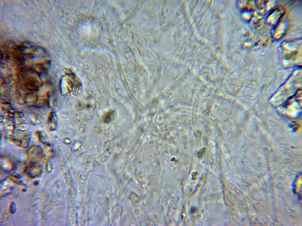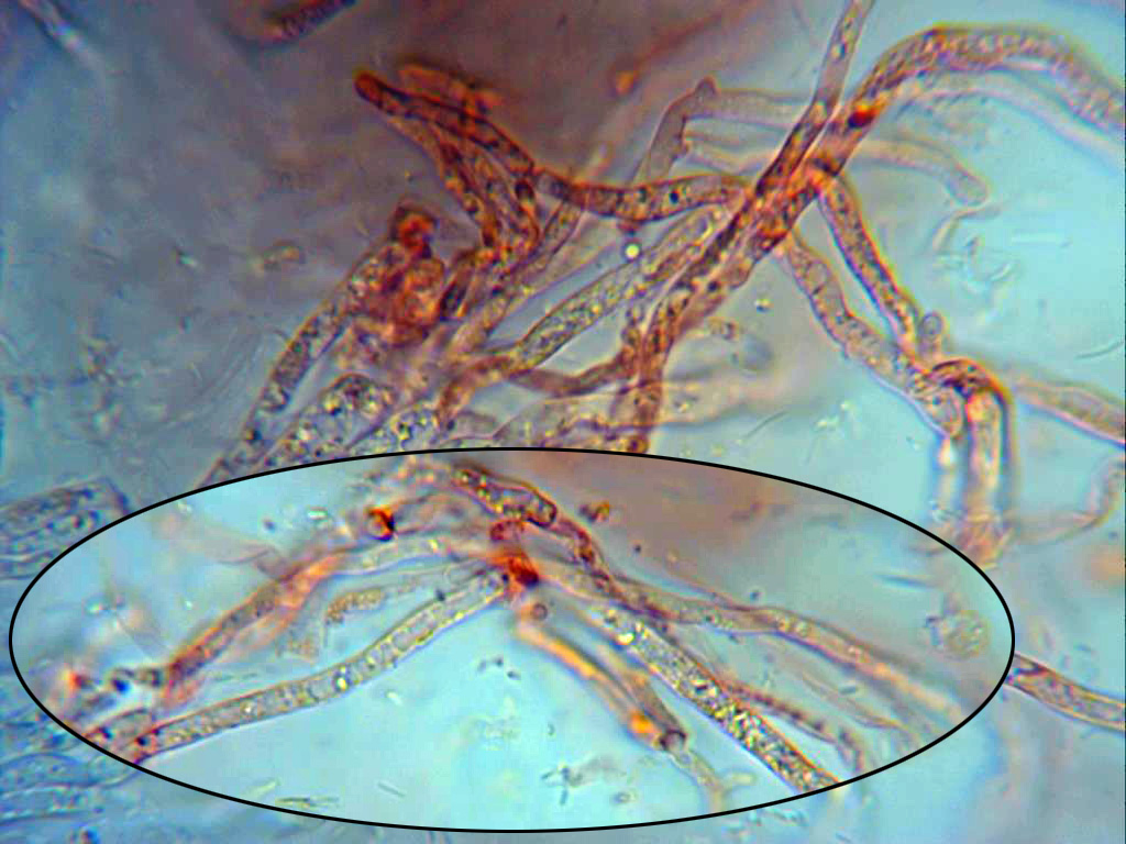 No pude observar esporas, así que con estos datos seguiré intentando dar con su identidad.