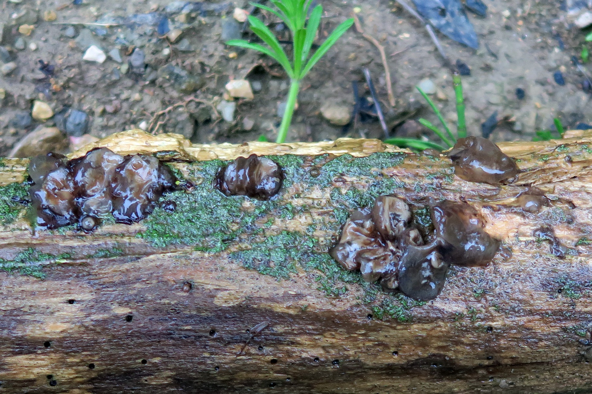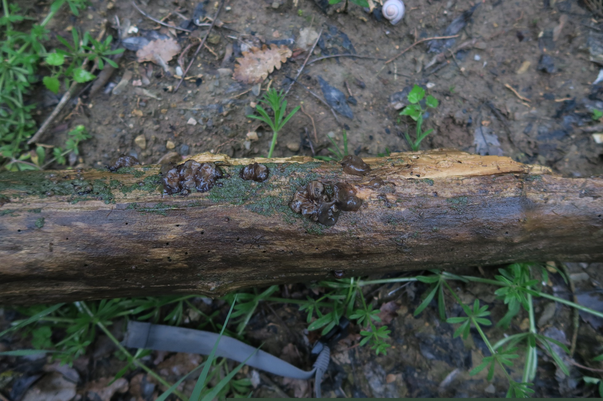 Os dejo unas imágenes de una Exidia, del pasado domingo, brotando en un tronco semisumergido en el agua de un riachuelo, de agua bastante limpia.