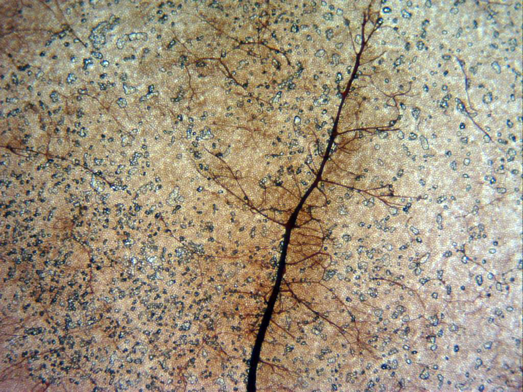 Mallas del capilicio a 1000 aumentos, la medida de estas oscila entre las 5 hasta más de 20 o 25 micras.