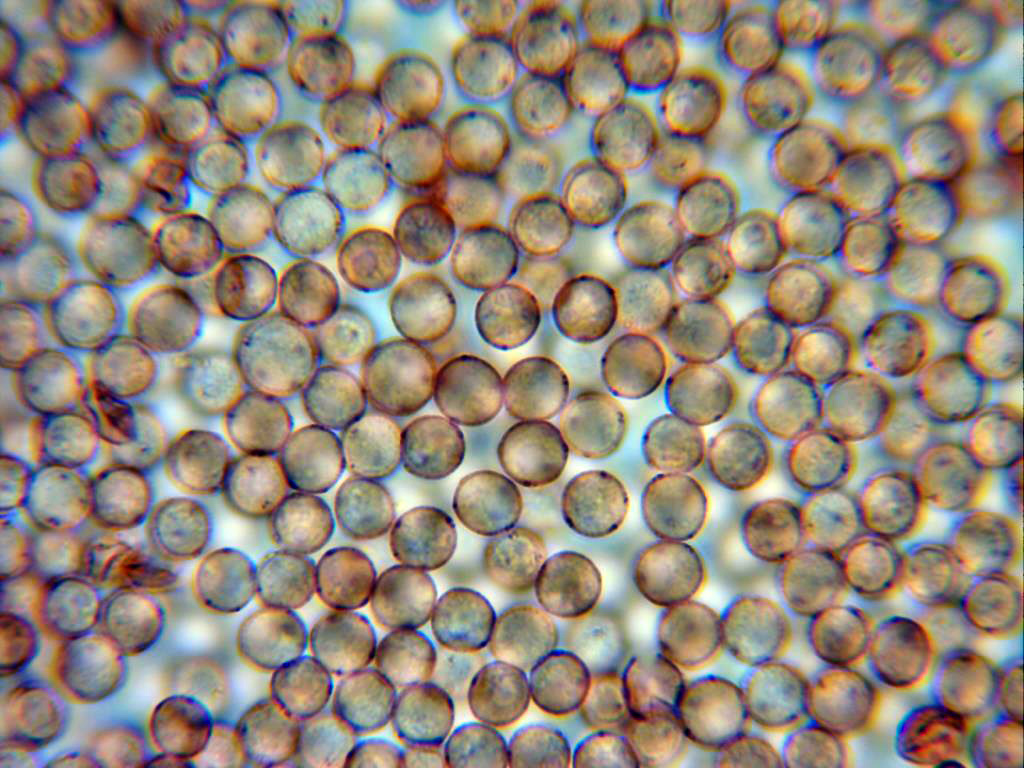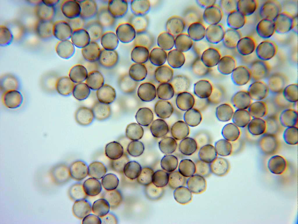 En esta imagen se pueden observar 2 esporas de 8,8 micras.
