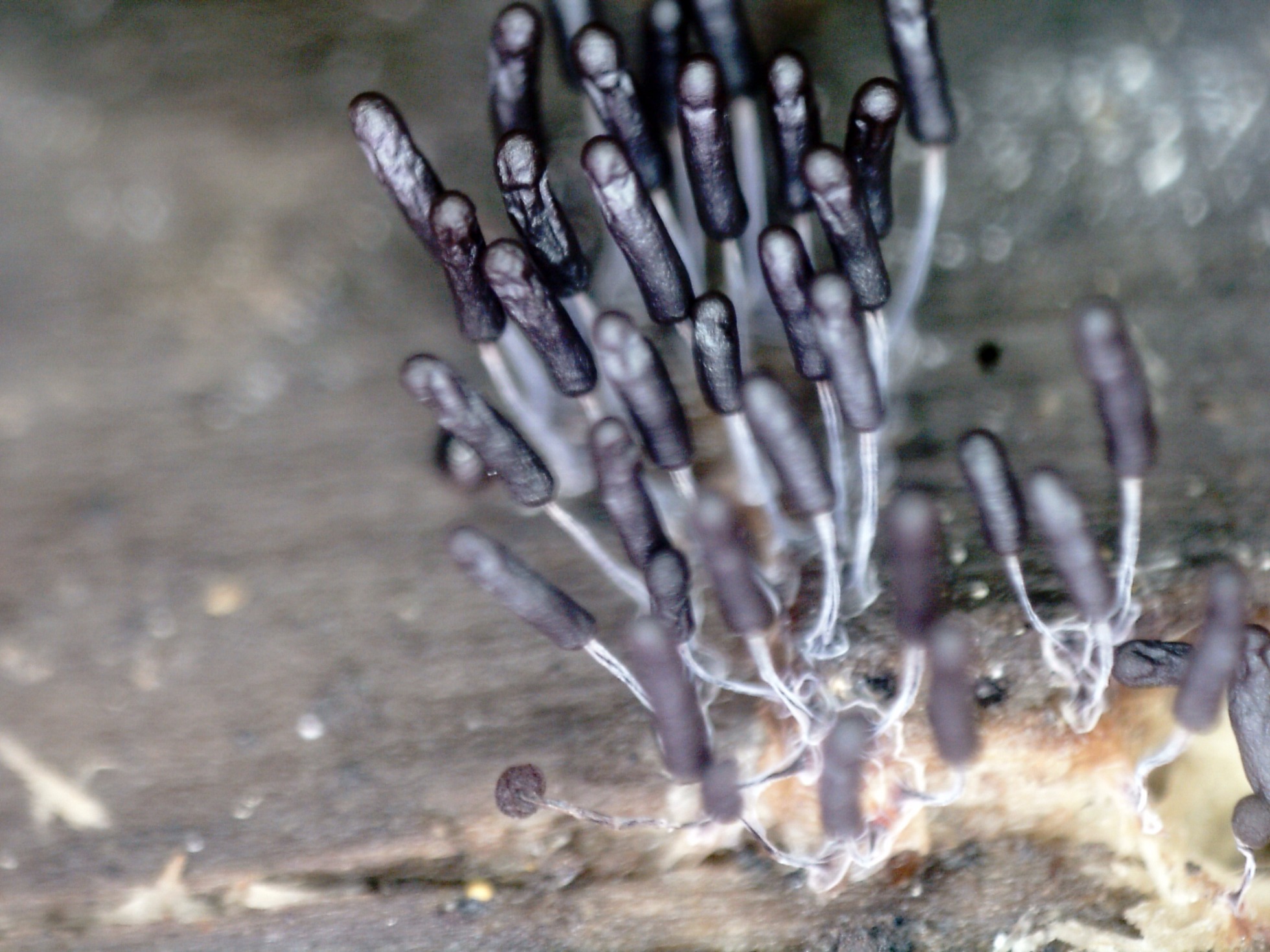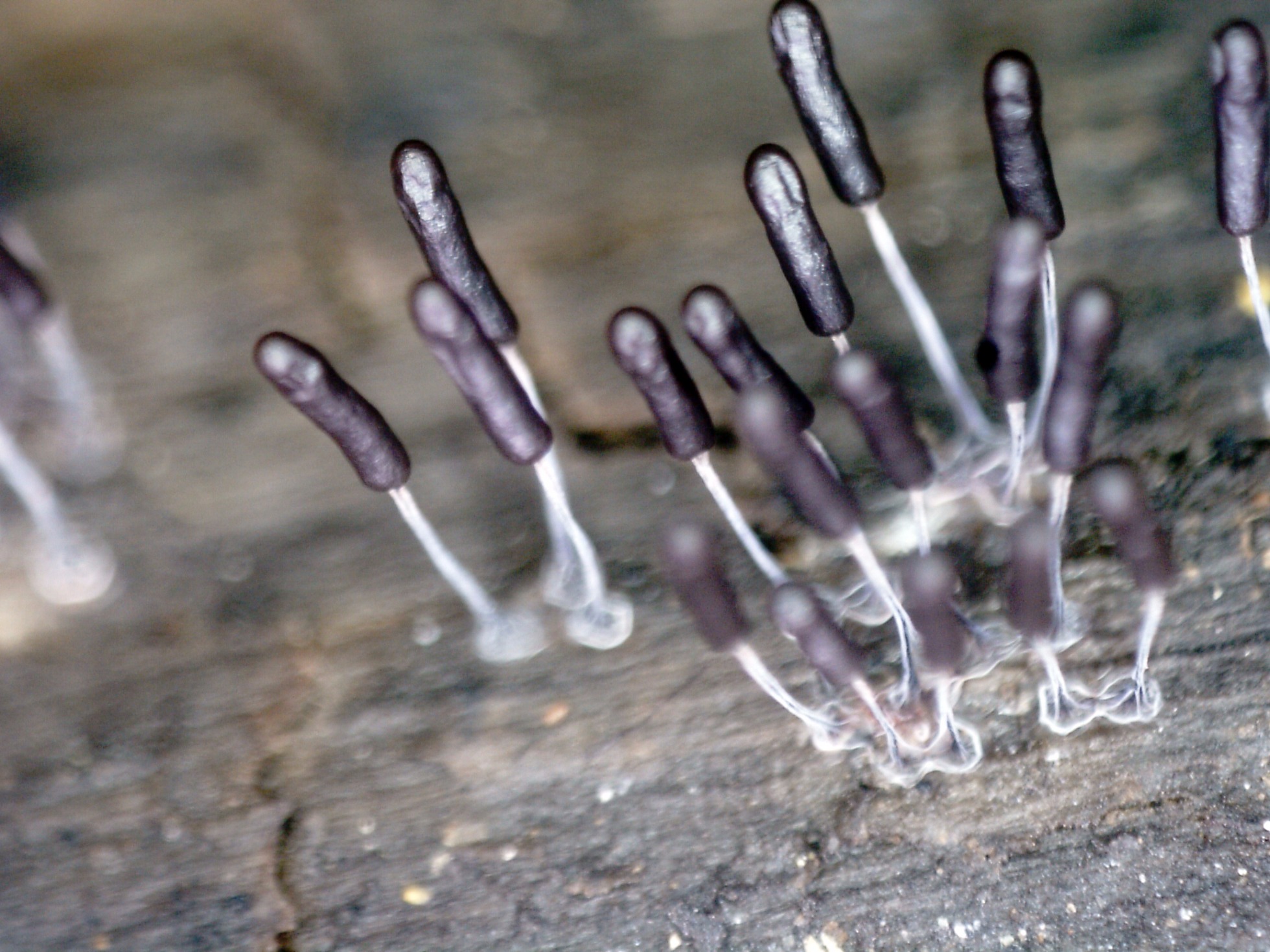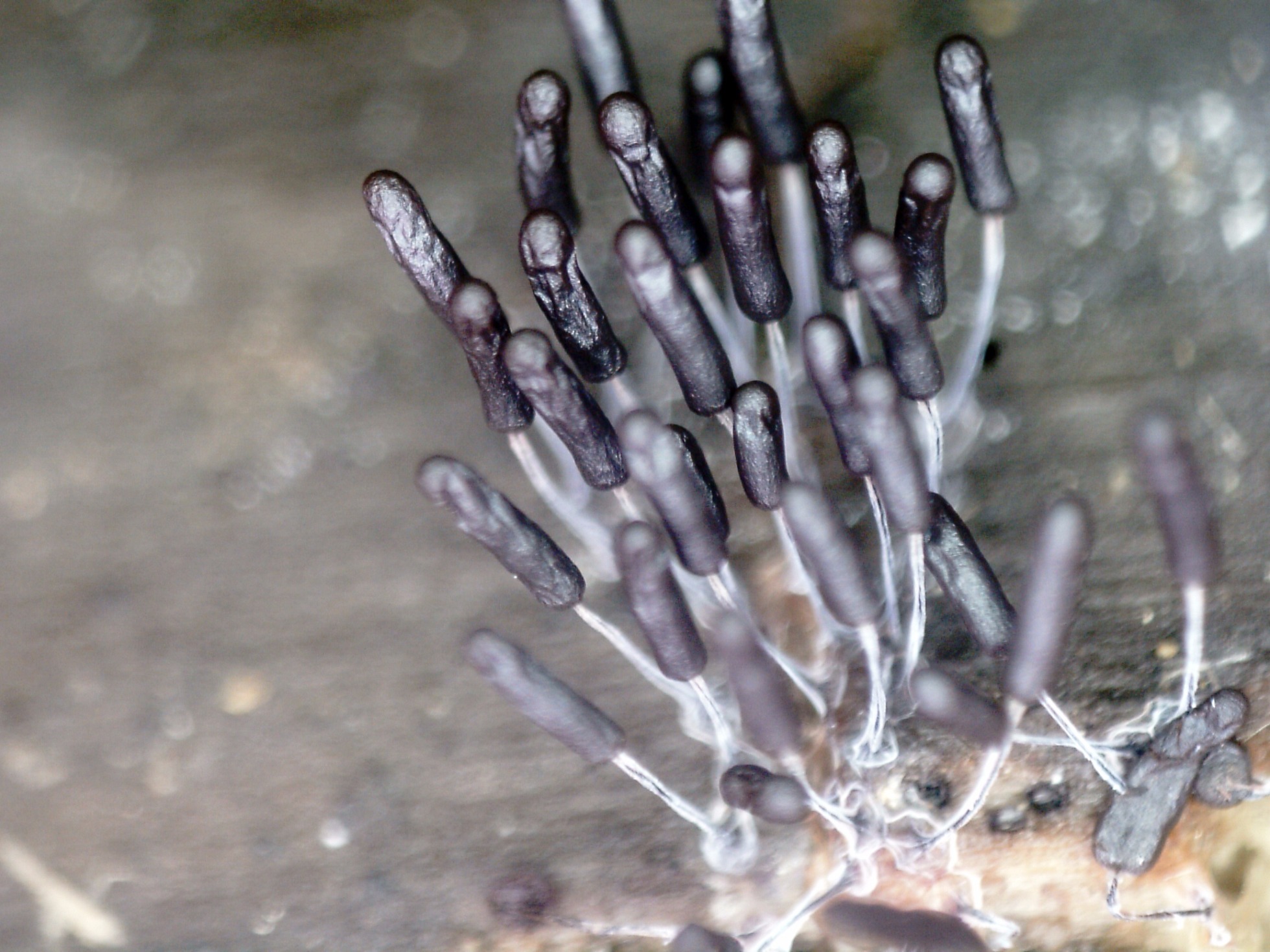 Esporocarpos de muy pequeño tamaño, ninguno llegaba apenas a los 5 mm. de altura, en grupos aunque no unidos por el pié.