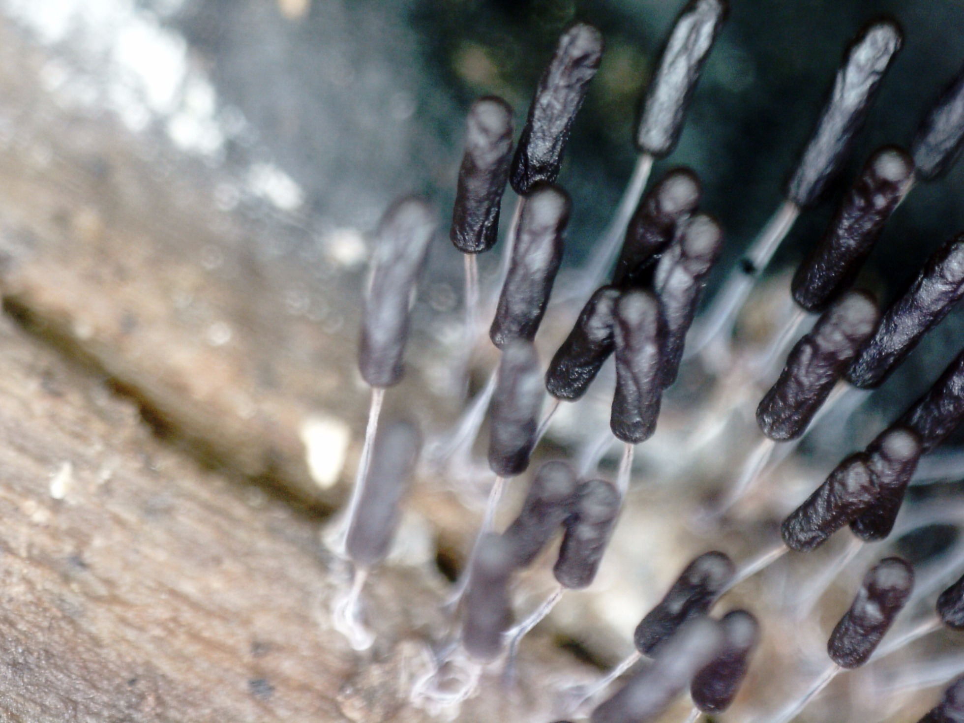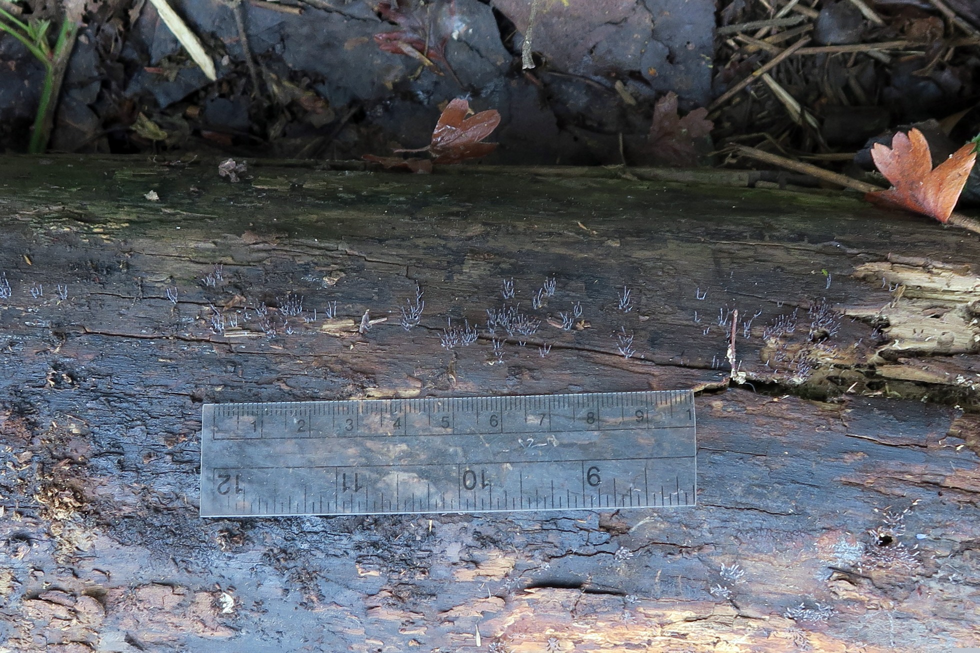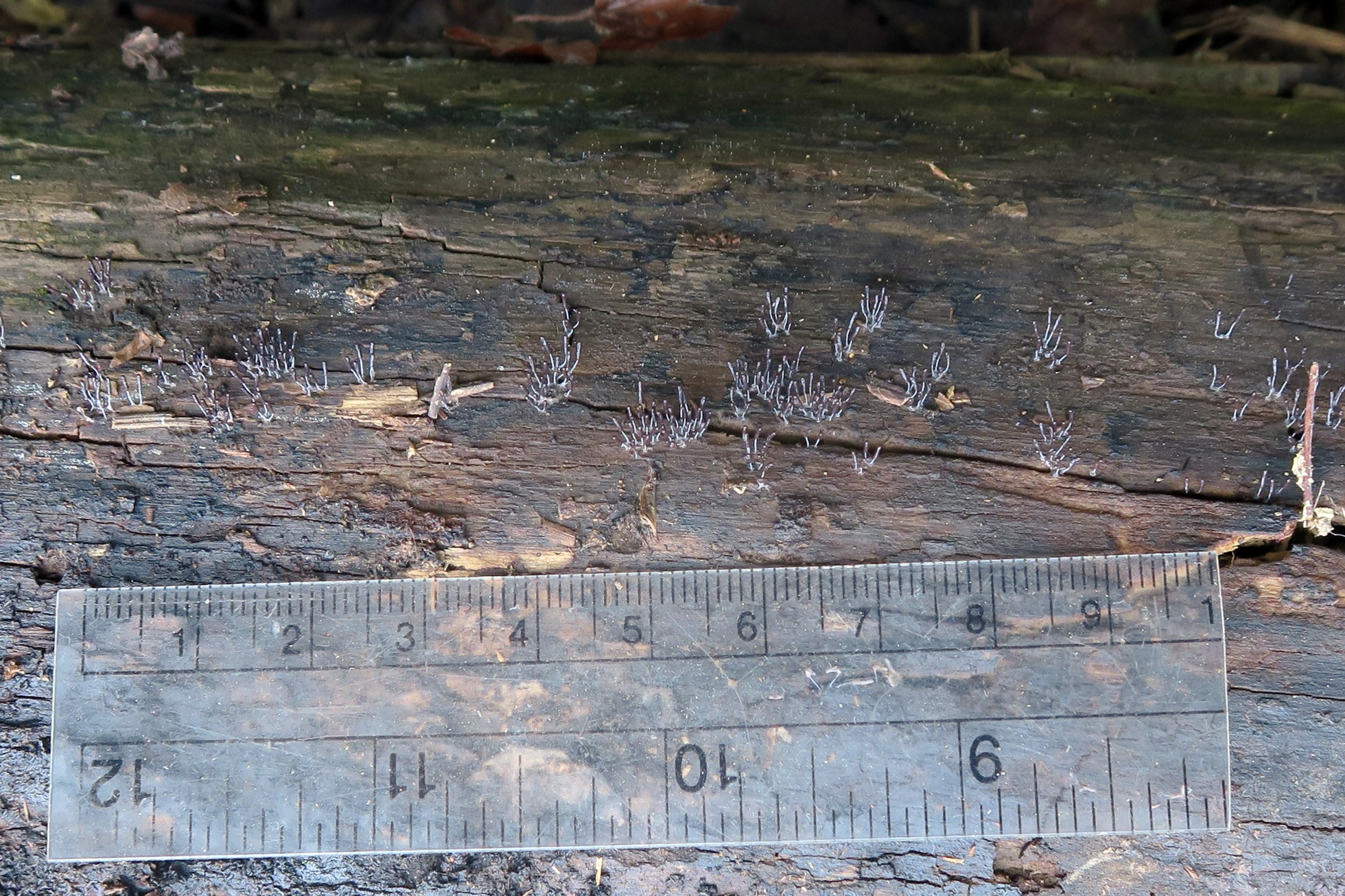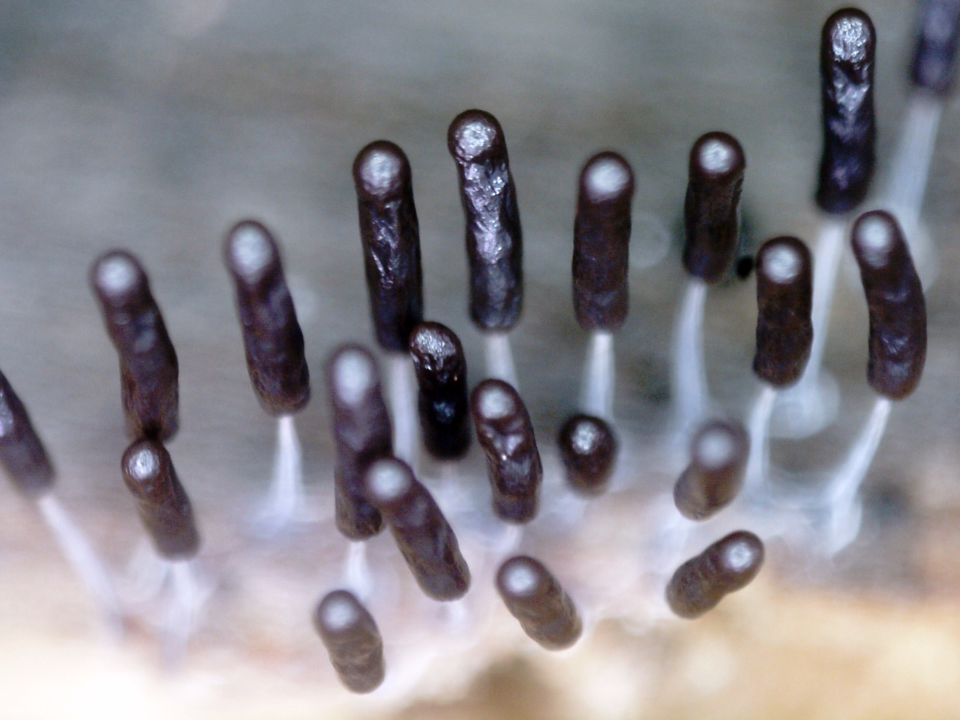 Esporocarpos de muy pequeño tamaño, ninguno llegaba apenas a los 5 mm. de altura, en grupos aunque no unidos por el pié.