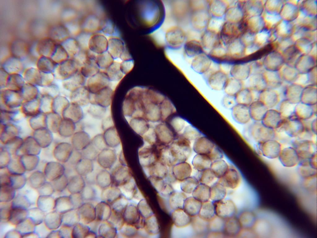 Una de sus características es la prácticamente ausencia de espínulas en el capilicio, en la imagen tomada a 1000 aumentos en solución de KOH, una de las pocas espínulas que pude observar.