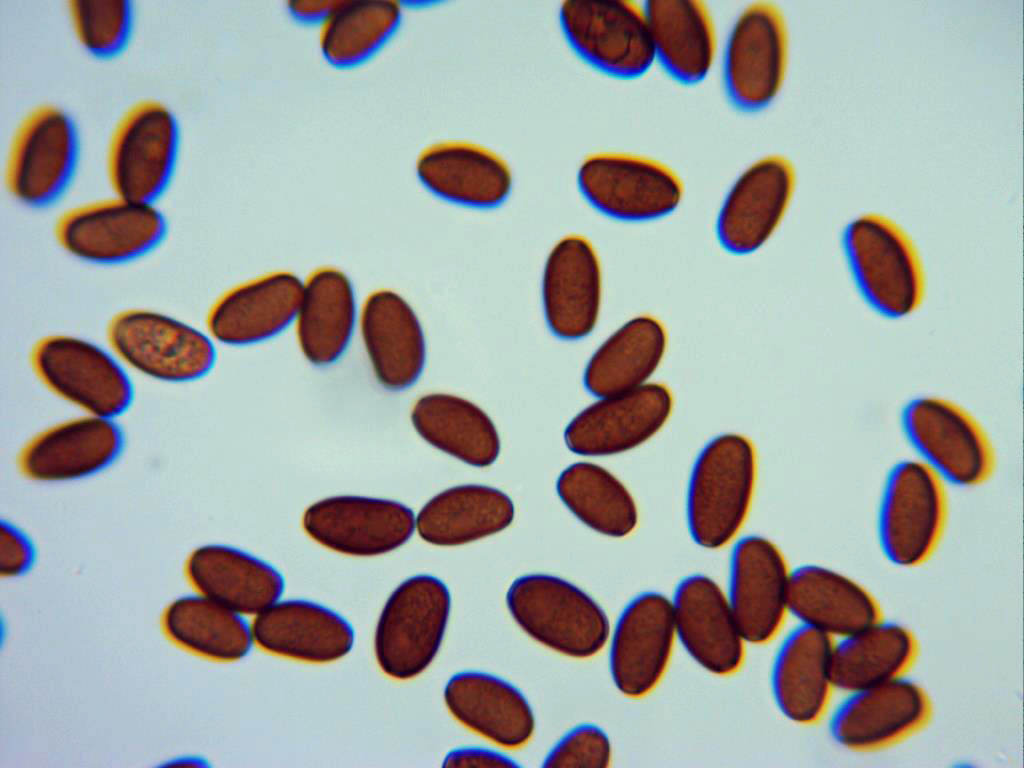 Esporas opacas, de color marrón rojizo, de pared lisa aunque ligeramente engrosada y provistas de poro germinal.