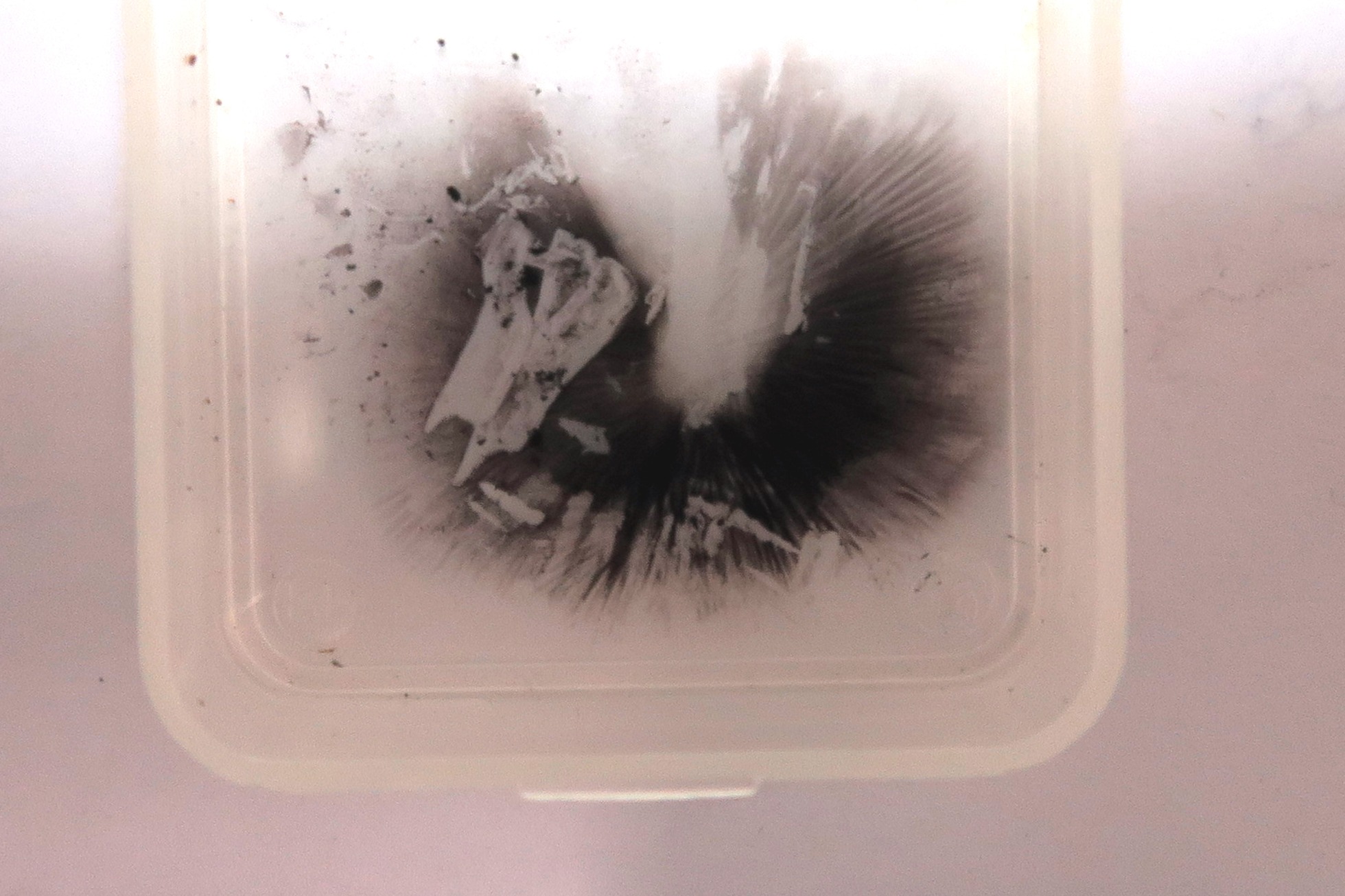 Detalle de la esporada en masa, de color negro.