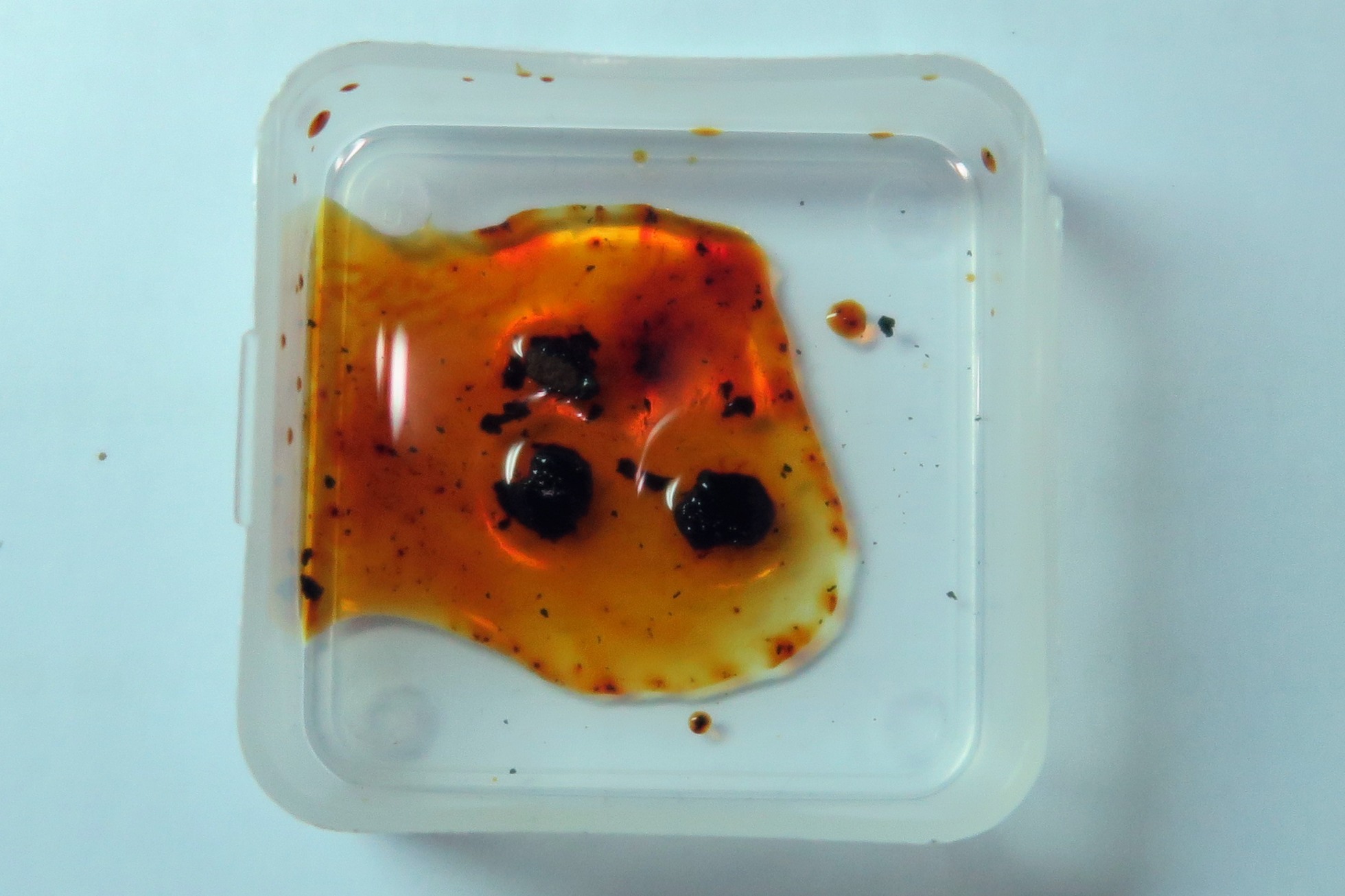 Reacción de los estromas al KOH, soltando casi al instante un pigmento de color anaranjado rojizo.