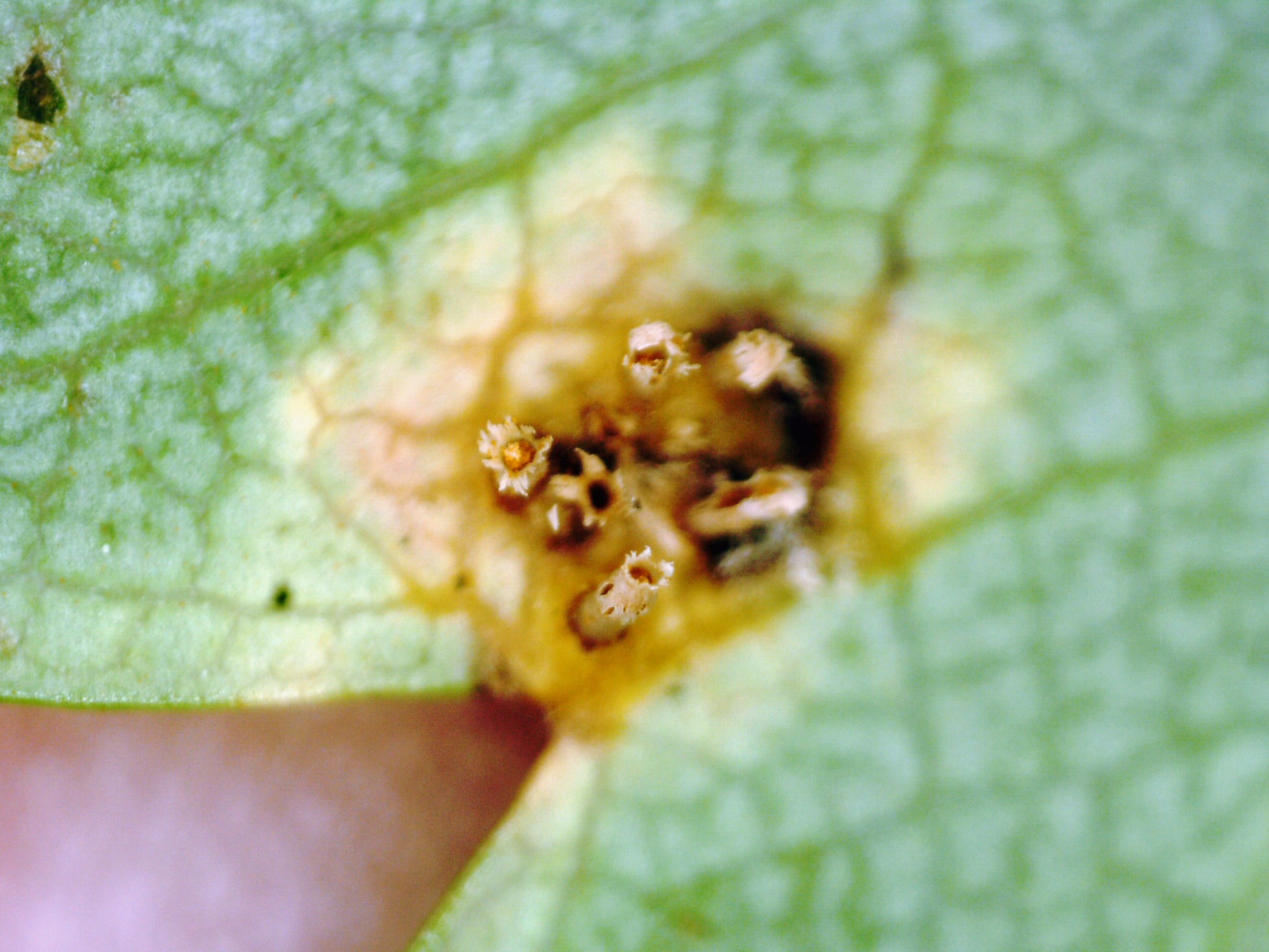 Os dejo unas imágenes de una Pucciniaceae del pasado domingo sobre unas hojas de espino albar "Crataegus monogyna"