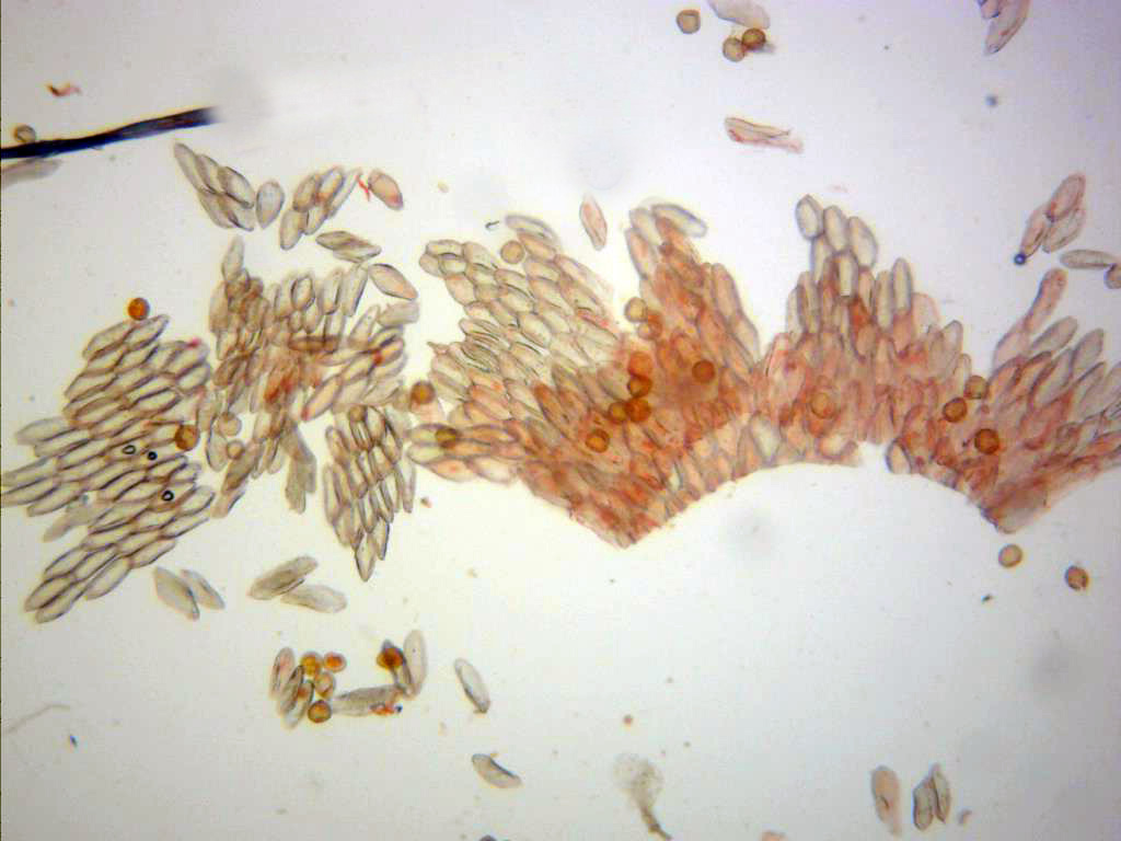 Eciosporas en rojo congo diluido, en mis mediciones de 23,4 ; 27,8 X 18,1 ; 24,1 micras.