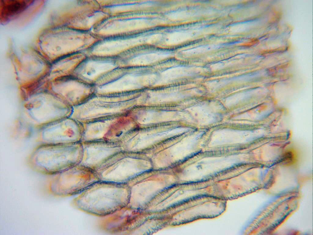 Peridio a 100 aumentos, este constituye la pared externa protectora, está formado por células romboidales de pared rugosa.