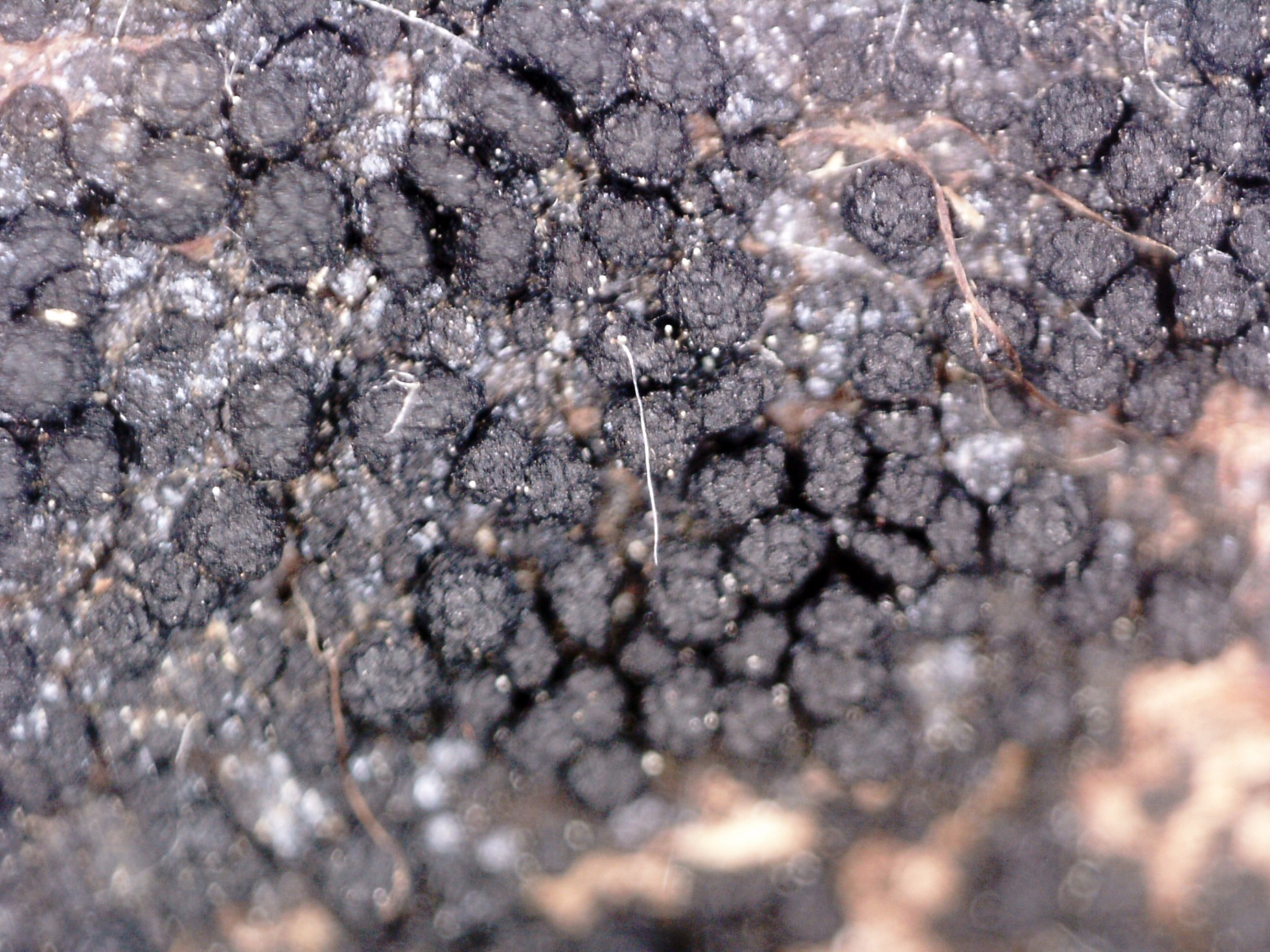 En estas imágenes se observa mejor el aspecto de los apotecios que nos recuerdan al de una mora madura.