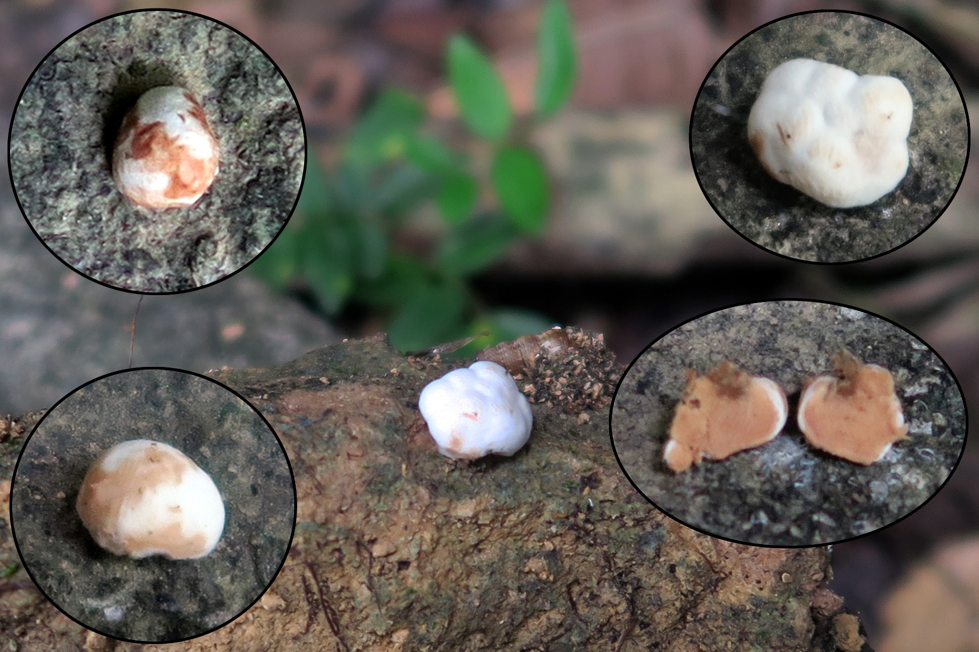 Detalle de su superficie a 40 aumentos, se puede observar un peridio fino y blanco con una textura algodonosa, me llamó poderosamente la atención el comportamiento marcadamente rubescente al roce de mis ejemplares, Se puede observar este detalle perfectamente en la miniatura de arriba a la izquierda de la primera imagen.